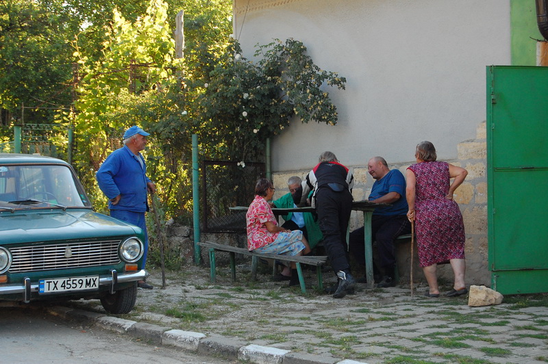 30 Minuten spaeter legen wir an, fahren 500 Meter zur Grenze und sind nun offiziell in Bulgarien angekommen. Durch spannende aber aermliche Doerfer geht es Richtung Dobric und dann weiter Richtung Balcik und dann nach Varna. Unterwegs muss Wolfi an seiner Kuh noch abgeruettelte Teile befestigen und wird von einer Frau zu einem bulgarischen Yes-Torty eingeladen, er bedankt sich brav indem er der Runde Zigaretten ausgibt.