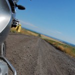 anstrengend. Unglaublich anstrengend, wenn man 300 km bei fast 40°C fahren muss soll darf will. Von Varna ueber Burgas ((auch Kuestenstadt)), wo Wolfi noch Strandbilder machen wollte, ging es ueber kleine und mittlere Strassen nach Plovdiv. Man faehrt quasi zwischen den einzigen Bergketten ((nicht sehr hoch)) in einem kochendheissen Tal ohne merklich Wind und die „weissen“ Strassen sind meist vollstaendig asphaltiert. Wenn man dann mal auf eine Kiesstrasse abbiegt, wird diese aber sehr schnell zu einer ueblen Piste, mit tiefen Senken und Wellen, Spurrillen und abenteuerlich grossen Steinen, so dass das Fahren richtig spannend und spassig wird. Diese muenden dann wahlweise bei einem alten Schafstall ((oder Zuchtbetrieb)), in dessen verfallenen Hallen 20 Jahre alte Felle vermodern oder in einem verlassenen Stadtteil einer x-beliebigen Stadt, der einfach aufgegeben wurde.