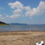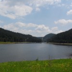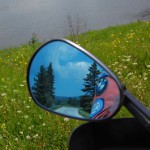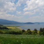 Morgens wurden die Moppeds, nach einem kurzen Fruehstueck, welches aus mehreren Kaffee bestand ((es haette auch Wurst, Kaese, Brot, etc. gegeben)), aus dem Garten wieder auf die Strasse bugsiert. Diesmal mit weniger Kratzern, Uebung regelt. Ueber kleine Strassen ging es Richtung Berge, die sind zwar nicht sonderlich hoch ((verglichen mit den Alpen)) aber unsagbar schoen. Und mitten in den Bergen kann man dann ein paar PKW Reifenspuren in der Pampa folgend zu einem kleinen See fahren, direkt am Sandstrand parken ((warum da Sand ist? Keine Ahnung)) und den kuehlen Wind geniessen.