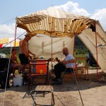 Waehrend ich mich versuchte wieder auf unter 45°C Koerpertemperatur zu bringen, hat sich Wolfi zum Essen einladen lassen und fabulierte wie wild mit den Einheimischen. Gut, Wolfi spricht kein Bulgarisch und die Bulgaren kein Wort English oder Deutsch aber die hatten sichtlich ihren Spass. Spass hatten wir auch, als wir der Wegweisung der Eingeborenen folgten und eine anspruchsvolle Passage meistern durften um wieder auf die Strasse zu kommen. Vermutlich dachten die, wenn die solche Enduroschiffe lenken, muessten sie es ja koennen. Danke fuer den Vertrauensvorschuss.