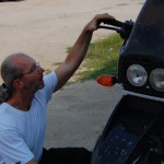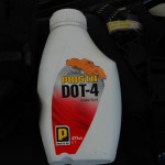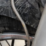 Nicht Lustig .. gutes Stichwort. Wolfi fand es ploetzlich gar nicht lustig, keine Bremswirkung vorne zu haben. Die Bremsleitung am Sattel war nicht mehr fest, die Suppe hat sich ueber den Sattel und die Scheibe ergossen und er kann noch mit der Hinteren arbeiten. Reicht aber um bis nach Goce Delcev zu kommen, 1 Pulle DOT4 zu kaufen und ueber einen Schlauch in eine leere Wasserflasche zu entlueften. Die Bremse geht nun quasi so gut wie nie zuvor.