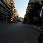 Wir fahren weiter bis Thessaloniki, weil Wolfi so gern das Meer sieht, leider landen wir in einem 0,5 * Hotel, mitten auf der Hauptverkehrsstrasse, die sich im Netz noch als „historische Altstadtstrasse“ verkaufte. Laerm, Verkehr, ein Zimmer mit 10 qm und die Dusche ist Teil davon. Beim „Restaurant“ nebenan noch Gyros gegessen und Muenchen Schwabing Preise bezahlt. Ich will morgen raus aus diesem Moloch und schnell wieder Richtung „Einoede“, wo man das Essen bezahlen kann, die Menschen freundlicher sind und der Sprit nicht pro Tag mehr kostet, als Verpflegung und Uebernachtung zusammen.