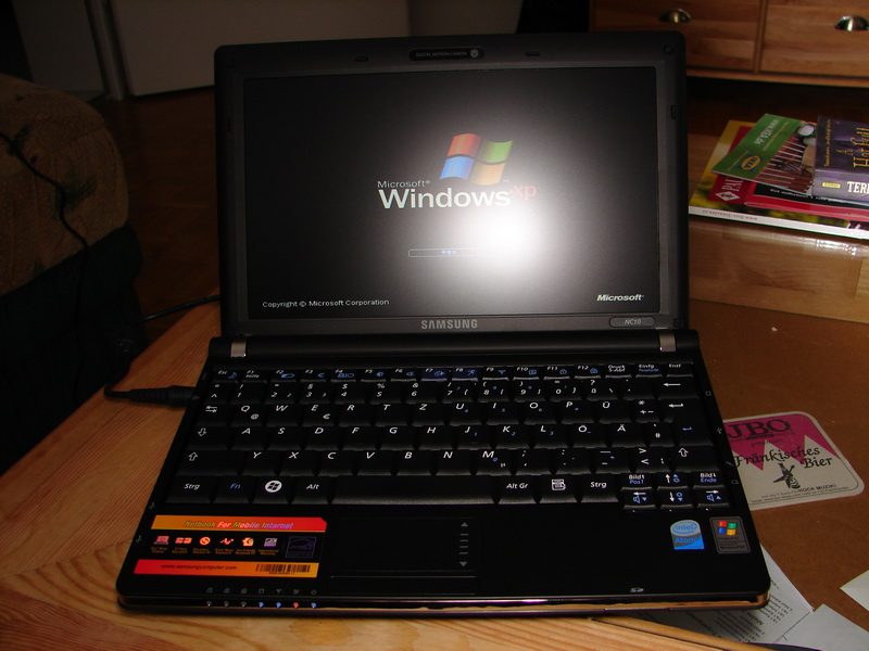 Momentan laeuft auf dem kleinen NC10 ((TourGard)) sowohl XP Home als auch Ubuntu 8.10 Intrepid Ibex. Vermittels Bootmanager ((grub)) kann ich bequem beim booten waehlen welches OS ich benutzen moechte. Unter XP Home laeuft eigentlich alles was das Herz begehrt, unter Ubuntu ist der Kleine jedoch noch performanter ((um Laengen wenn ich das mit dem eeePC vergleiche)). Dank 160 GB Platte muss ich mir aber im Moment keine Sorgen machen, welches ich denn nun behalten will, jedes hat eine 75 GB Partition und damit ausreichend Platz ((ich bin weder Jaeger und Sammler noch so ein „Downloadverbrecher“)).