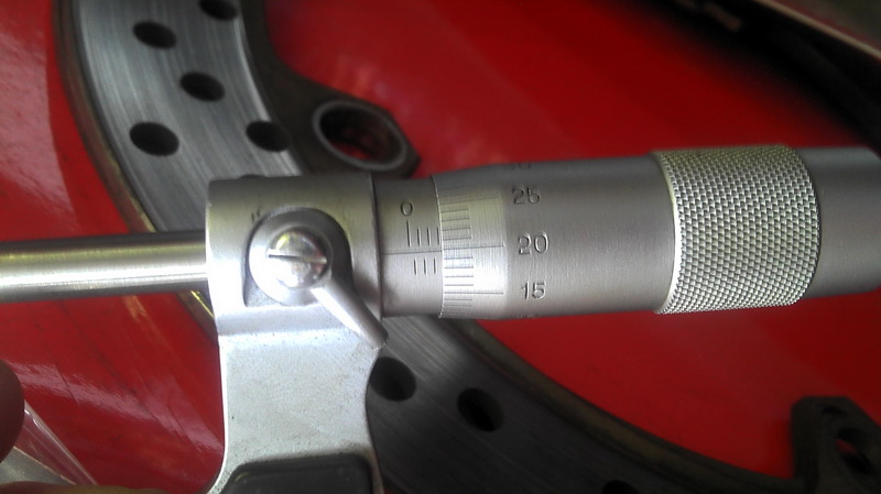 Achja, die Bremsscheiben der 1200er habe ich bei der Gelegenheit ((also der Verfuegbarkeit einer Buegelmessschraube)) vermessen und siehe da, 3.70 mm Rest. Gut ausgenutzt die Dinger.