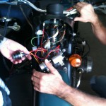 Nachdem in wochenlanger Kleinarbeit ein neuer Kabelbaum gestrickt wurde, die Funktion von Antrieb und Bremse gesichert wurde und man die Karre ohne schlechtes Gewissen auf den Verkehr loslassen durfte, wurde heute eine Miniausfahrt gewagt. Wolferl’s Ansage: „wir fahren den Andi besuchen, das sind ueber 40 km einfach und er hat ja einen Uralfahrer zu Besuch„. Aha .. falls die Fuhre auseinander faellt, ist einer vom Fach vor Ort, verstehe. Aber Wolfi hat vorgesorgt. Neben 3.5 l Oel ((10W40 … stand gerade rum)) wurde ein vollstaendiger, 20 kg schwerer Werkzeugkasten in den Kofferraum des Beiwagens verfachtet. „Man weiss ja nie, was man braucht.“ – Soso, aha. Als Geheimwaffe wurde gleich noch ein vollstaendiger Dipl.-Ing. des Maschinenbaus der Luft- und Raumfahrt ins Boot gesetzt. „Man weiss ja nie….“ . Soso, aha. Innerlich hat es mich fast zerrissen. Das gruene Gespann, vom Russen montiert, technisch auf einem Niveau von Neunzehnhundertkieselstein, kann vom beruehmten kasachischen Hufschmied Instand gesetzt werden und dann sitzen da zwei Ingenieure mit einem blauen Werkzeugkasten und freuen sich wie kleinen Kinder wenn ihnen die Scheisse nicht um die Ohren fliegt. Herrlich.
