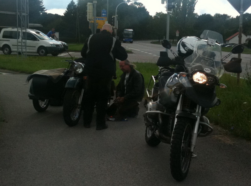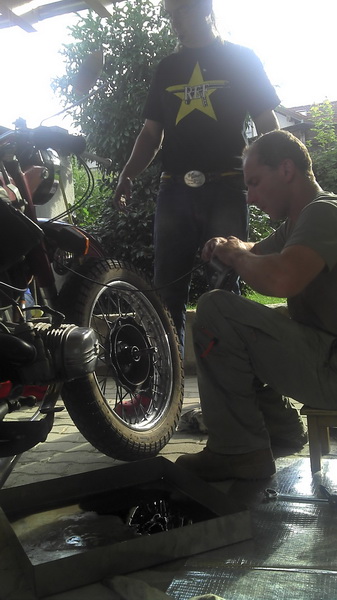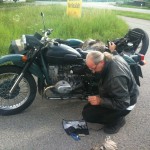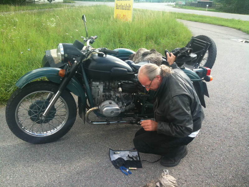 $Spezl, mit dem ich vor kurzem ans schwarze Meer fuhr, besitzt seit April ein Uralgespann. Fuer recht kleines Geld erstand er die Bastelburg und wird nicht muede zu betonen, dass es hier nuuuuur um den Spass am schrauben geht. Dass die Fuhre anstandslos eine HU schaffte, war eine glueckliche Fuegung und der reichlichen Zugabe von WD40 fuer alles was sich bewegen und elektrifizieren muss und Panzertape fuer alles was nicht wackeln darf, zuzuschreiben. Die Plakette diente auch erstmal nur als „Erlaubnis der fortwaehrenden Probefahrt“ fuer Wolferl. „Ich weiss, da muss ich noch mal bei …“ quotiert er jegliche Baustelle an der alten Russin.