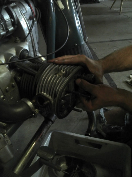 nachdem bei der letzten Probefahrt mit einem lauten Knall die Kopfdichtung ihren Dienst quittierte, wurde heute endlich eine neue verbastelt. Hier bot es sich an, gleich die Stehbolzen mit zu tauschen und nochmal ordentlich die Ventile einzustellen. Als naechstes steht dann noch eine Vergaserkontrolle an und dann kann man die Russin eigentlich mal wieder auf die Strasse schicken. Die Probefahrt verlief diesmal ohne lauten Knall, wenn man von den „normalen“ explosionsartigen Zuendungen der Karre absieht.