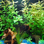 Als kleinen visuelle Merkhilfe, wie schnell die Pflanzen wachsen, ein paar Bilder vor und nach der Gartenarbeit. Die Hintergrundpflanze waechst unglaublich schnell und nach dem Abschneiden und neu Einsetzen des gekappten Stuecks wird fleissig gewurzelt. Nur der Helferi im Vordergrund wird nichts werden, der ist weich genug um den Schnecken ab und an als Snack zu dienen. Mooskugeln sind permanent vollgeschissen, wie der Rest eben auch und die MoosFarnplatten vorne wachsen auch unterschiedlich schnell. Macht aber nichts. Natur halt.