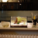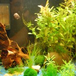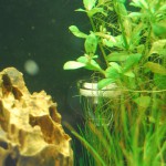 Dem „grossen“ Cube habe ich statt der Wurzel nun einen Drachenstein spendiert und die Wurzel wandert in das Minibecken, indem ein paar gestutzte Polysperma ((waechst wie nix Gutes das Zeug)) eingesetzt wurden. Ich habe eigentlich keine Verwendung fuer das zusaetzliche Pfuetzlein aber es schadet ja auch nicht. Vielleicht warte ich bis es veralgt und setze dann Schnecken rueber um zu sehen wie sie Schneisen reinfressen.Jedenfalls wird nun wieder Osmose- und Leitungswasser gemischt um den KH stabil bei etwa 10 zu halten, die Duengung sollte dem Helferi ((kleine Pflanze im Vordergrund)) helfen und die Polysperma ((rechts hinten)) wird explodieren und regelmaessig beschnitten.