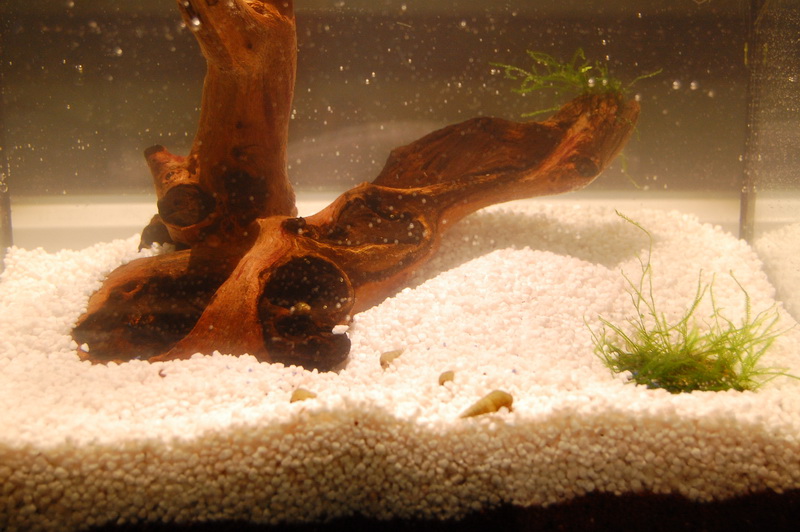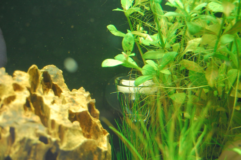 CO² Duengung. Die Maschinenbaeuerin will gleich eine bauen, ich haette lieber was fertiges ((sieht einfach schicker aus als 2 Flaschen mit Druckschlauchverbindung und Hefe die vor sich hingaert)). Gut, die gekaufte Bio CO² Anlage macht genau das selbe, hat aber einen hybschen Keramikausstroemer. Bei der Gelegenheit staubte Madame ein geruettelt Mass an Turmdeckelschnecken ab, die sich sofort einbuddelten und dann Dune -der Wuestenplanet- nachstellten indem sie alle paar Zentimeter wieder emporstiegen. Spektakulaer schoen anzusehen. Natur eben.