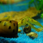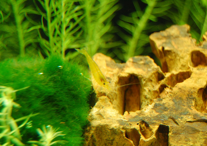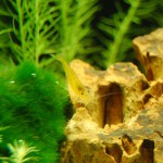 Da es immer noch nur das poplige Kitobjektiv der D40 ist, sind gute Bilder ein Ergebnis dutzender Versuche, denn nah dran kann man mit dem einfach nicht. Im Prinzip, Blende auf und los. Mit 55 mm ist Blende 5.6 das beste was man kriegt. Blende manuell und dafuer Zeitautomatik. Da ueber dem Becken nun 2 x 11Watt Aquarienlampen mit „Tageslicht“ protzen, ist die Ausleuchtung auf die beiden Lampen beschraenkt. Blitz geht gar nicht, das verhunzt alles.