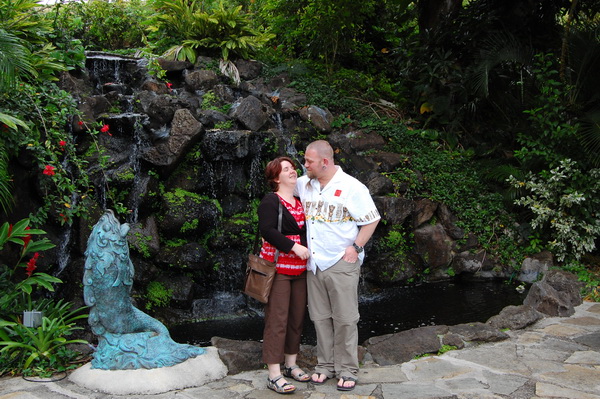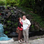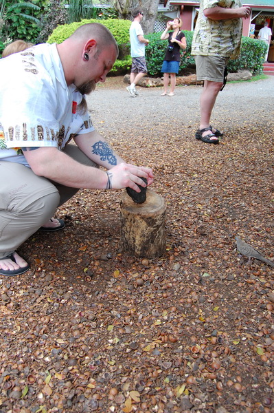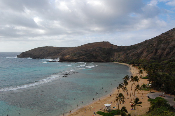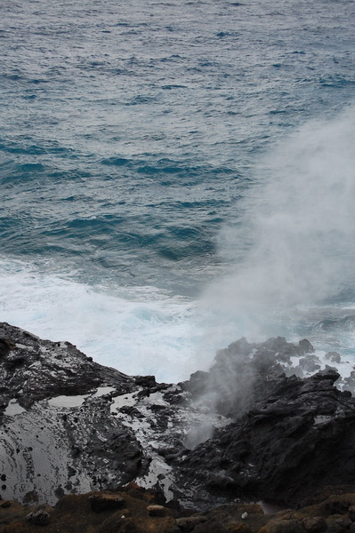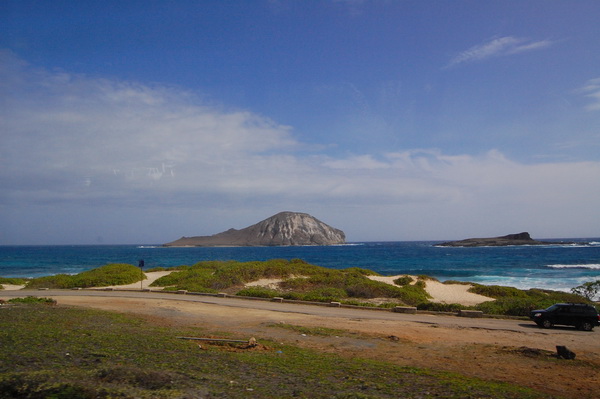 Da die erste Woche mit der Konferenz abgedeckt war, blieb eigentlich nur der Donnerstag uebrig um „ein bisschen was“ zu sehen. Also wurde spontan eine „Grand Circle Island Tour“ gebucht. Last Minute und fuer 2 Leute als Tagesprogramm fuer 60 USD. Schnaeppchen irgendwie. Klar, die Stops zum fotographieren ((ein knappes Dutzend)) an den schoensten Plaetzen rund um die Insel fielen mit 15-20 Minuten eher knapp aus aber wir sind in dem Reisebuss, gelenkt von Cousin Bob ((alle Hawaiianer sind untereinander Cousins, Onkel, etc… Tradition und Ohana halt. Nicht wie in einem oesterreichischen Bergdorf, wo man gleichzeitig Onkel, Vater und Bruder der gleichen Magd sein kann)) einmal um die komplette Insel gekarrt worden und wie es sich fuer eine subventionierte Reise gehoert ((klar, darum „last minute, extra guenstig“)) war Fruehstuck und Mittagessen jeweils in einem „Coral Superstore“, in dem sich die Japanesischen Touristen, die dabei waren, recht fleissig irgendwelche Broschen und Ketten haben verkaufen lassen.