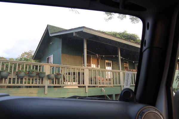Also auf nach Wailuku … und es ist unbeschreiblich. Wundervoll ist noch zu schwach umschrieben, enge schlechte Strassen, materialmordend und die Aussicht nicht in Worte und nur schwer in Bilder zu fassen ((wir gaben trotzdem unser Bestes)). Auf halber Strecke etwa stand ein in die Jahre gekommener Truck ((so ein Jeepdings mit 8 Liter Hubraum aus den 90ern)) mit 3 jungen Leuten vor der offenen Motorhaube ((ich glaube es war ein Bronco)).