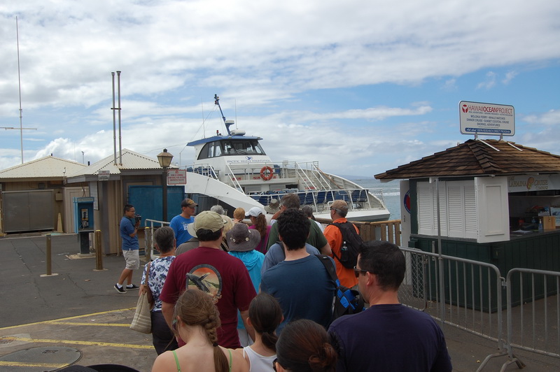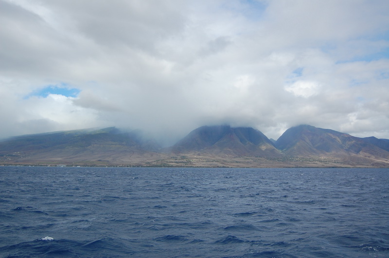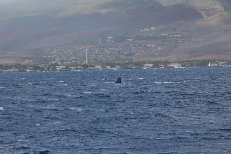 Captain Ahab konnte es kaum fassen, war er dem weissen Ungetuem doch schon wieder so nahe? Ok, es geht natuerlich nicht mit den Japanern auf Walfang sondern mit der Pacific Whale Foundation zum kucken. Um 13:15h checken wir ((wieder mal)) ein und um 13:45 geht es los. Wir fahren mit einem relativ grossen Boot raus auf den Pazifik und kreuzen vor Maui hin und her, bis nach etwa 20 Minuten eine kleine Gruppe Buckelwale auftaucht.