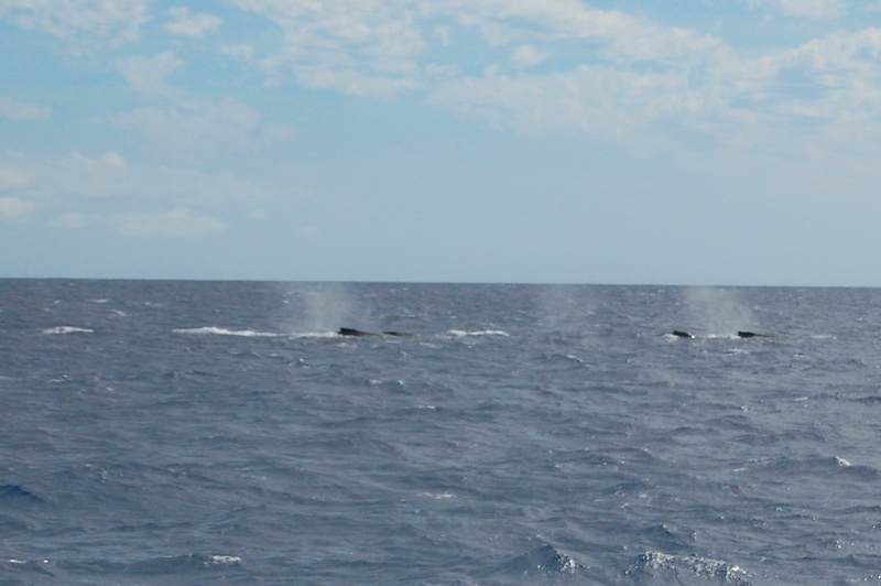 Dieses Glueck hatten wir nun nicht, jedenfalls nicht so, dass man es schoen in der Kamera ((eh nur mit dem Miniobjektiv bestueckt)) haette bannen koennen. Wer sich also bei einem Ausflug zu den Walen eine Riesenshow verspricht, der wird moeglicherweise enttaeuscht. Es lohnt sich sicherlich, mit einem renommierten Unternehmen eine solche Reise zu wagen, jedoch garantiert auch hier keiner fuer „ahhhh“ und „ohhhh“. Die Moderatorin, die auf dem Schiff permanent ueber Wale erzaehlt versucht ein wenig die Kundschaft bei Laune zu halten und so wird auch in jedes ausblasen eine kleine Geschichte hineingebaut. Ein weiteres Tier von links und schon erzaehlt sie von „ein weiteres Maennchen naehert sich der Gruppe… vielleicht kommt es zu einem Konkurrenzkaempfen, sie buhlen um das Weib…“. Vielleicht muss man aber auch Meeresbiologe sein um sowas da hinein zu interpretieren. Schlecht war es nicht aber kann halt gegen Schnorcheln nicht anstinken.