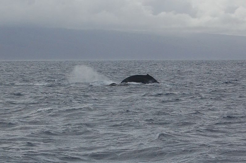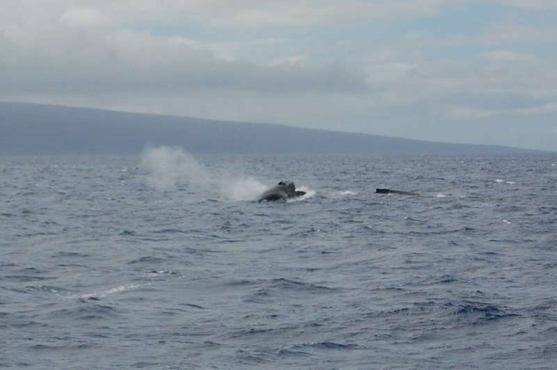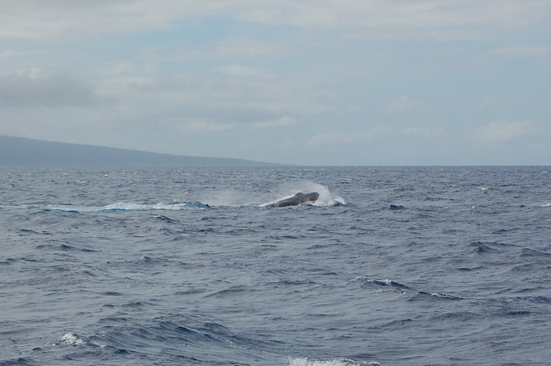 Wale sind schon was tolles, riesige, friedliche Ungeheuer, singend unter Wasser von Alaska bis nach Hawaii zu finden ((je nach Jahreszeit)). Das Problem beim Beobachten ist aber eben, dass sie nur selten wirklich was „tolles“ machen. Meist sieht man eine Rueckenflosse, dann mal ein Ausblasen, dabei steigt eine meterhohe Luft-Wasserfontaene auf und kurz danach, wenn man Glueck hat, kommt der Wal hoch um Luft zu holen.