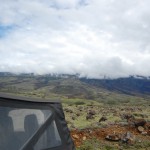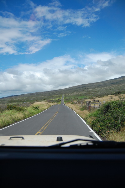 Bis etwa Kaupo ist es Hwy 330 und Regenwald. Danach relativ schlagartig der Pilani Hwy 31 und Steppe, trocken, sonnig und heiss. Das „gute“ Wetter haelt bis kurz nach der Ulapalakua Ranch, an der wir uns mit einem Burger staerken und prompt wiedererkannt wurden. „Gooden Mohgaehn“ schallt uns entgegen, als die Bedienung uns begruesst. Kleine Insel eben.