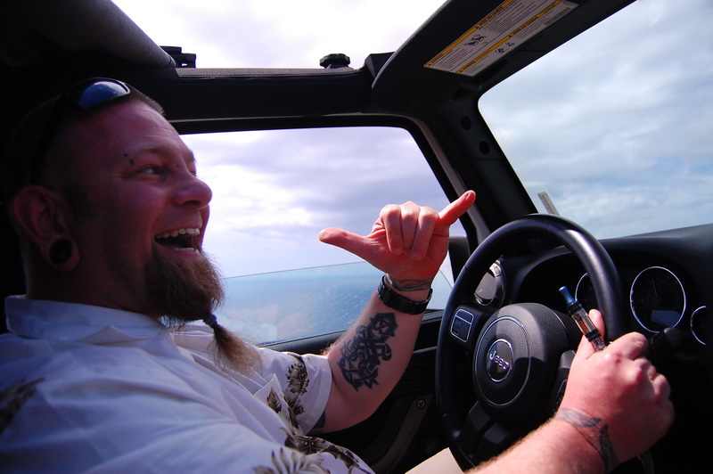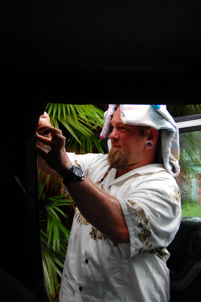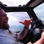 Wenn man bedenkt, dass wir die meiste Zeit im Regenwald waren und die Inseln immer eine Regenseite und eine heisse, trockene Seite haben, mit dem Mopped wollte ich hier nicht rumfahren. Strassen entweder geflutet und man wird durchweicht oder man zerfliesst bei 30°C, wenn man Glueck hat. Ich habe die Vorzuege eines Jeeps gerne genossen. Wobei Softtop nicht so geschickt ist, wir machten immer nur das vordere Drittel auf, das kann das Hardtop auch und theoretisch kann man beim Softtop leicht seine Sachen geklaut bekommen. Alles per Reissverschluss zu oeffnen an so einer Kiste.