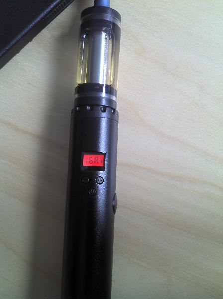 Jedoch im Detail hat sich ein klein wenig getan. Die 1.5 kann ((wie die ProVari)) den Widerstand des Verdampfers anzeigen ((sieht aus wie ein A, soll aber ein R sein, fuer Resistance)) und schickt sich an, dem DCT Carto ((laut Hersteller 1.5 Ohm +-0.1)) 1.6 Ohm zu bescheinigen und dem mitgelieferten ((bei der originalen LT)) Hochleistungsverdampfer satte 2.9 Ohm. Das deckt sich sowohl mit den Herstellerangaben, als auch mit der Erfahrung. Der DCT Carto mit 5V befeuert ist schon ein Erlebnis, kokelig ist untertrieben.