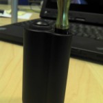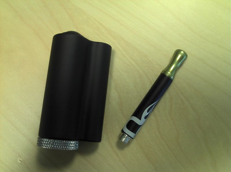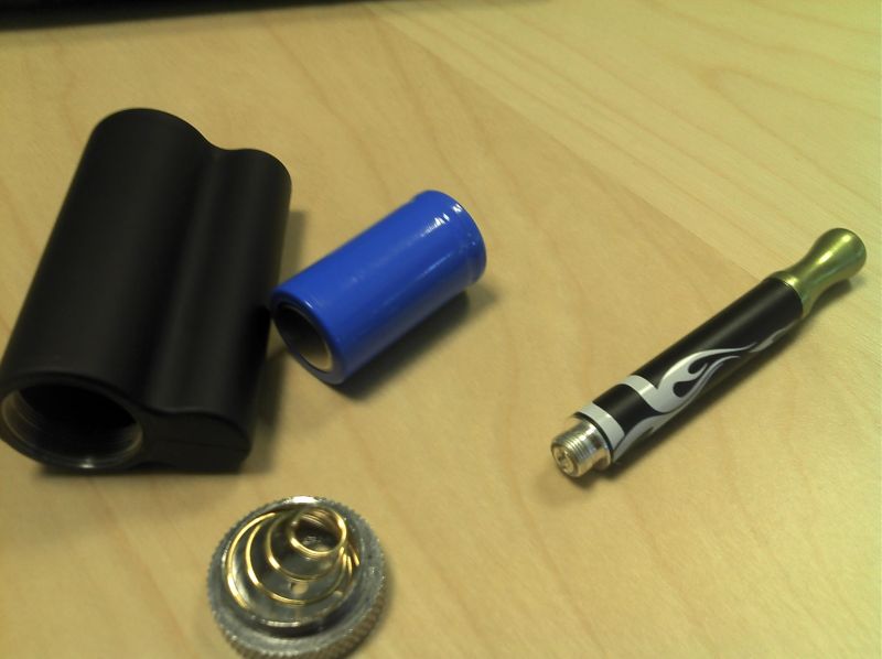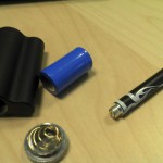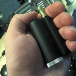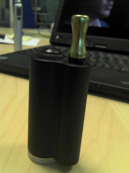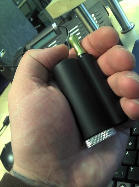 Die Maschinenbaeuerin hat sich ja vor Kurzem einen VMod gegoennt ((Bottomfeeder)) und der Gedanke so ein Miniteil zum Dampfen zu haben reizte mich nun schon sehr. Unverhofft kam ich so in den Genuss eines Grippers zum Nulltarif ((gesponsort von Joerg)) inklusive eines 1.5 Ohm Cartomizers. Die Funktionsweise ist denkbar einfach. Man packt einen 18350er Akku ((3.7V / ca. 700 maH)) in den Gripper, schraubt den Carto rein, welcher so weit versenkt wird, dass nur noch 2 mm rausschauen und steckt ein DripTip ((510er)) drauf. Den grossen Taster oben druecken und Voila, es dampft. Da es ein ungeregelter Akkutraeger ist, dampft es am Anfang wie Hulle und wird mit nachlassender Spannung ein wenig duenner. Wobei ich bereits seit gestern Abend an dem Ding haenge und es immer noch sehr angenehm ist.