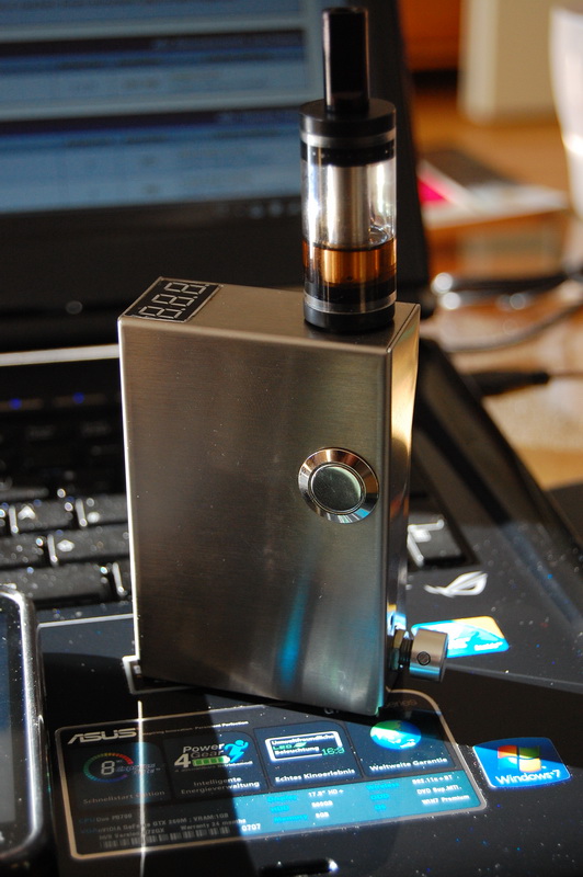 Dieser GP Mod wurde im Bastelworkshop bei einer kleinen Dampfergrillerei gebastelt ((1 Loch habe ich hoechstpersoenlich da reingebracht)) und macht mir enorme Freude. Wichtig ist, jede GP sieht anders aus. Display sichtbar oder innen liegend? Poti innen oder aussen? Welche Art Taster? Wie und wo den Poti bedienen? Welcher Anschluss fuer den Dampfapparat? Ich habe Standard 510er genommen, so kann ich per 510-eGo Adapter auch mal nen IMIST Verdampfer bedienen.