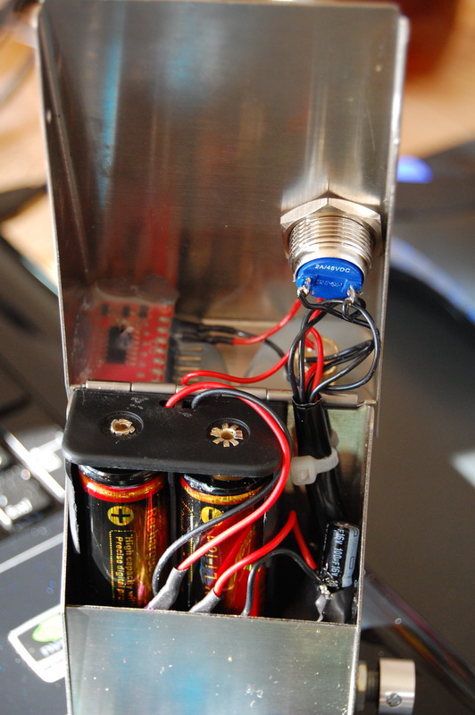 ok, heisst natuerlich GennyPenny der Mod und besteht im Prinzip aus Einzelteilen, die man in jedem Elektroladen ((Conrad, Pollin, Reichelt… you get the point)) kaufen kann. Manches eventuell besser bestellen aber im Prinzip kein Hexenwerk an die Bauteile zu gelangen. Welche Art Taster, Poti oder LC Display man nimmt, ist egal. Noch egaler ist die Form, Farbe und Material des Aeusseren. Ob ((wie in meinem Fall)) eine Zigarettendose herhalten muss oder ein beliebiges anderes Gehaeuse. Manche bauen ihre GP ((GennyPennyy)) in eine Tupperdose, ander in alte Oelkaennchen oder eine Kuckucksuhr. Man muss nur genug Platz haben um die Elektronik ((nicht sehr gross)) und die Akkus ((2 x 18650 oder 2 x 18350)) unterzubringen.