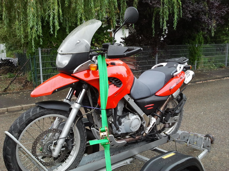 Manche Dinge bewaehren sich im Leben. Und manchmal ergibt es sich, das man zufaellig eines solchen Dinges wieder habhaft wird. So fuhr ich dann nach einer kleinen Zwangspause beim Bastelfritz des geringsten Misstrauens ((Handbremse vom 3er hat sich zerlegt)) mit dem Spielzeughaenger ((der wirklich praktisch ist)) zu $Spezl, der massiv zuviele F’s in seiner Garage hat. Kein Scheiss, so viele 650er von X-Challenge ueber F bis Rallyeumbau TT und TT39 Kisten hab ich auf einem Haufen nur auf einem Touratech Travel Event erwartet. Aber zurueck zur GS. Eine 650er, Baujahr 2000 mit 48.000 km und Koffersatz (reichlich verbeult)), so wie einem Topcase ((haesslich aber praktisch und Original)) und auch noch gleichschliessend. Leider momentan noch in Rot. Ich beabsichtige jedoch vermittels Folie ein froehliches Fruehlingsschwarz oder so anzubringen.