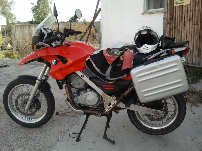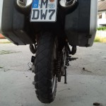 Aber warum denn nun statt der R1200GS eine F650GS? Nicht mal halbe Leistung, knapp 50% Hubraum, vibriert wie ein Nacktmull am Nordpol. Weil die Karre einfach robust, zuverlaessig, simpel und doch so gut fahrbar ist. In die originalen BMW Koefferchen, die sich wirklich elegant an die Karre schmiegen, kriegt man zwar nicht wirklich ausreichend Zeug unter aber fuer einen Kurzurlaub sollte es reichen, mal sehen ob die Kiste nicht gleich eingeweiht wird, schliesslich stehen ja ein paar freie Tage vor der Tuer.