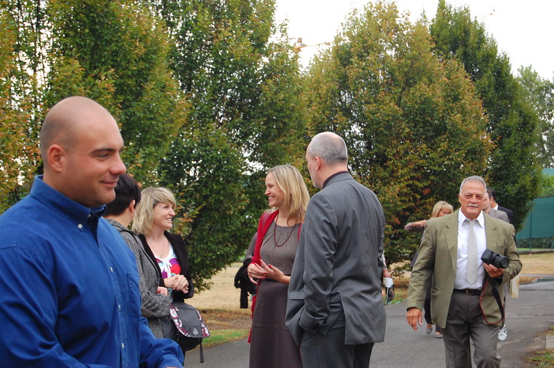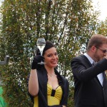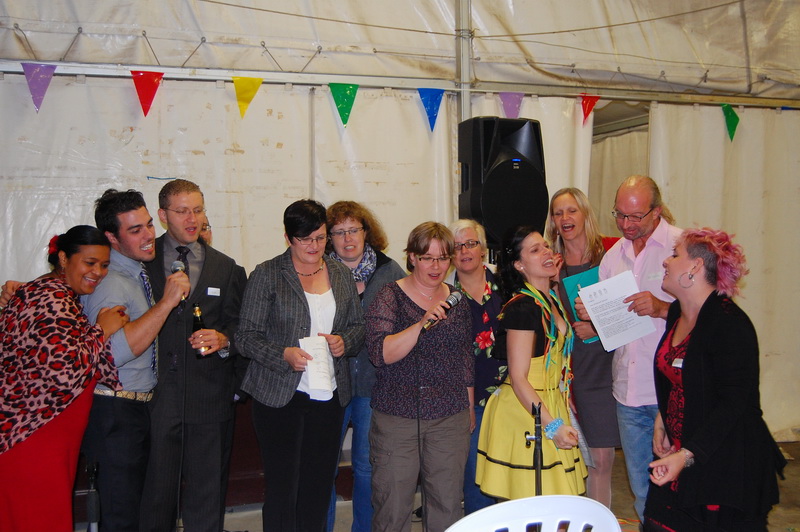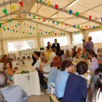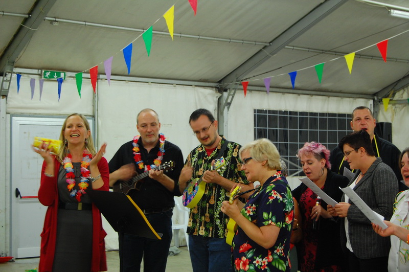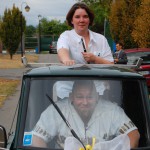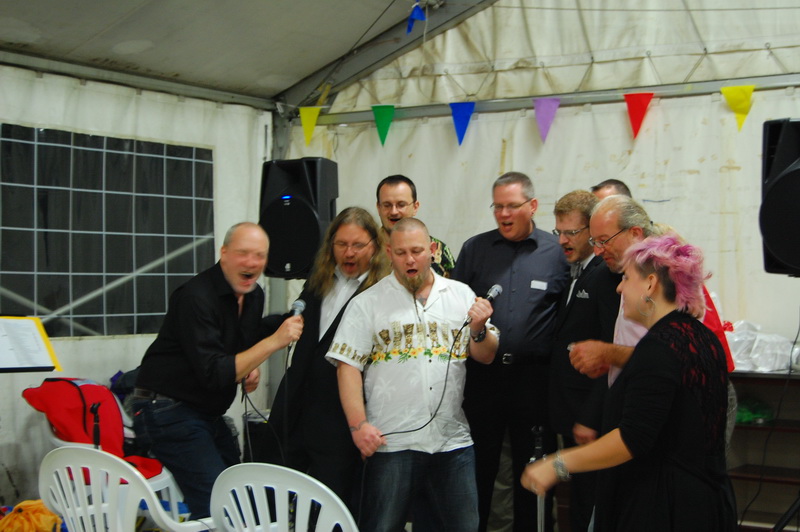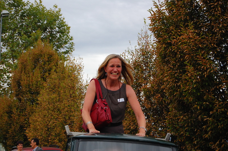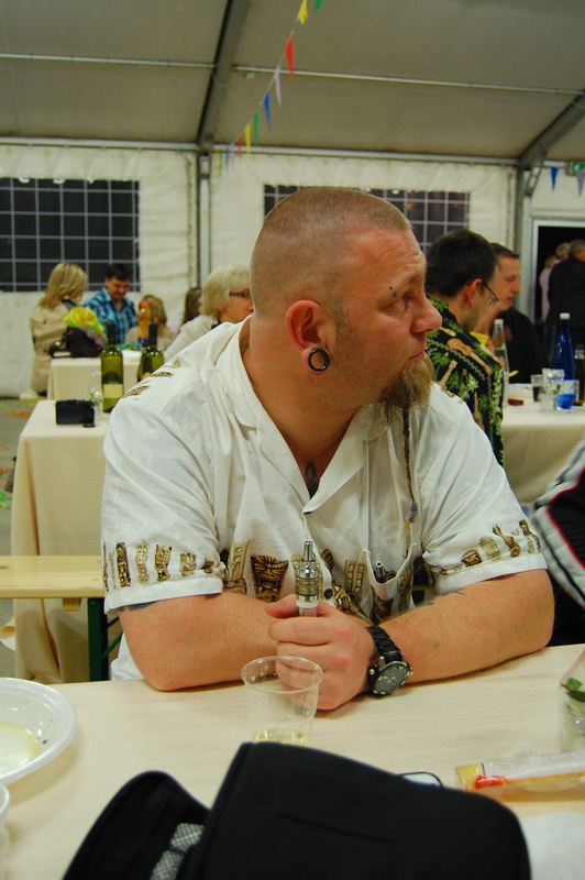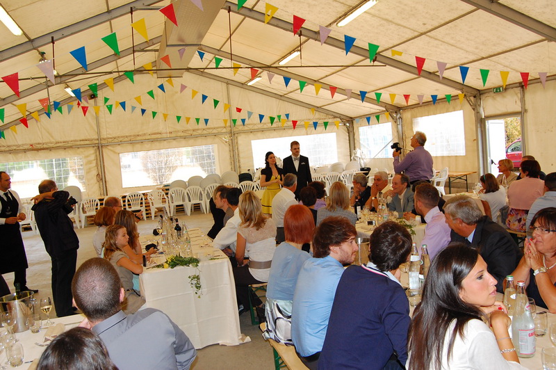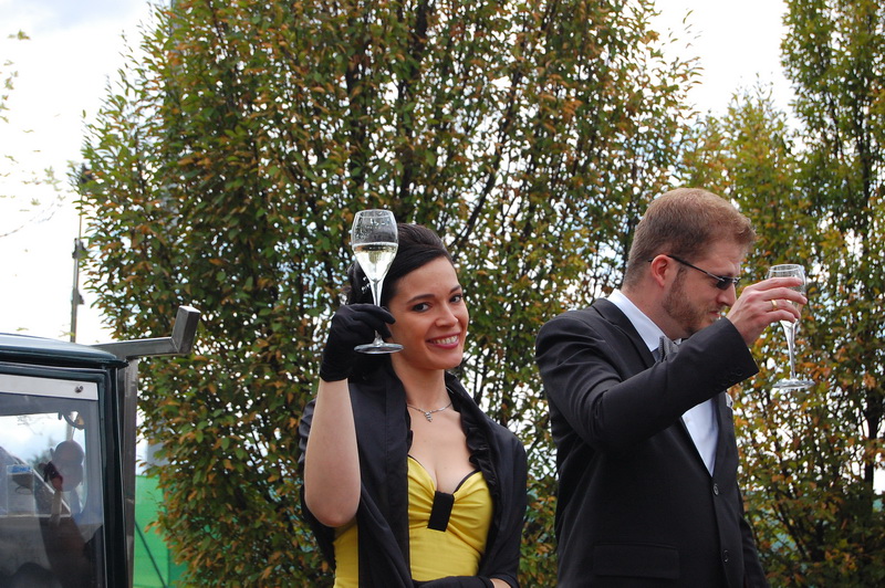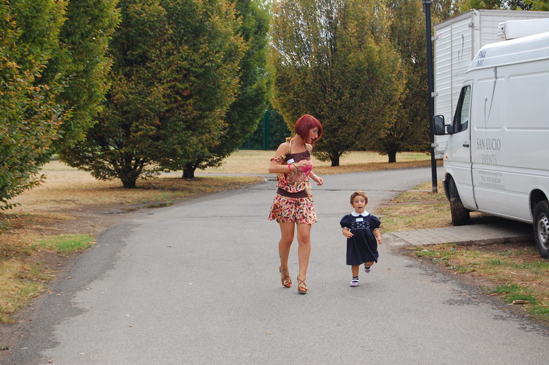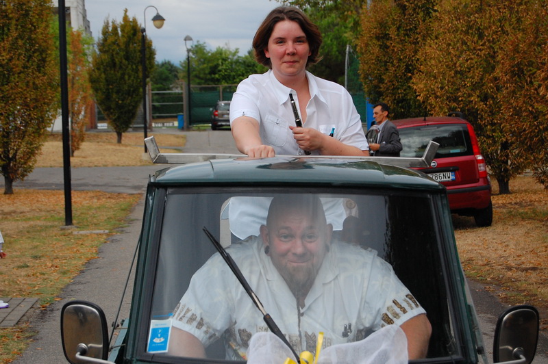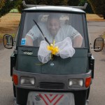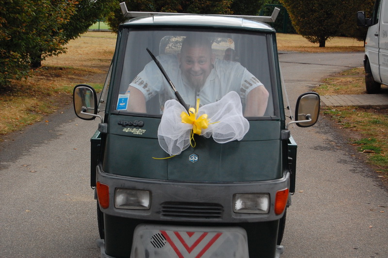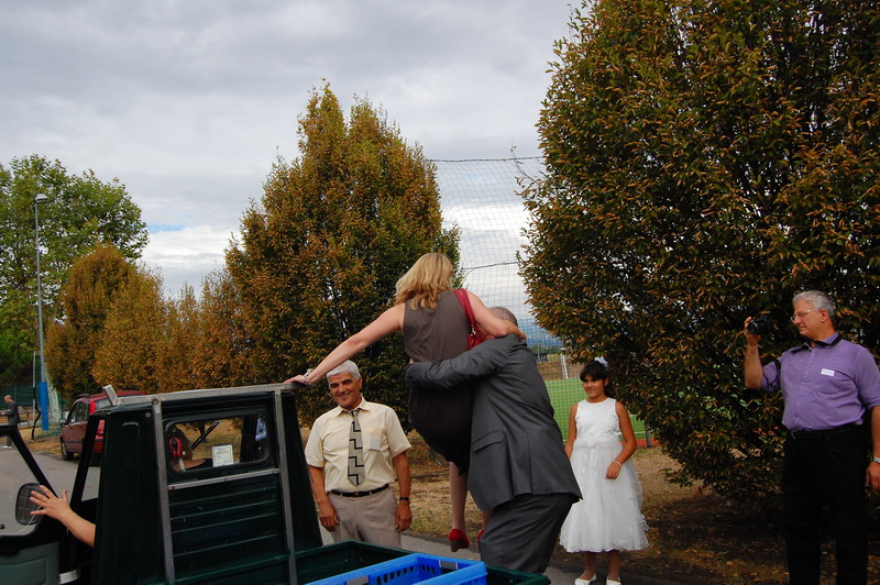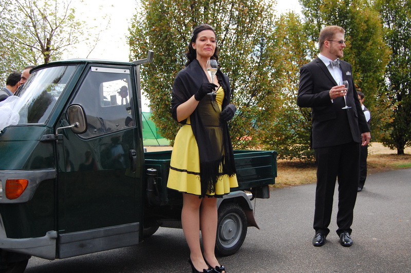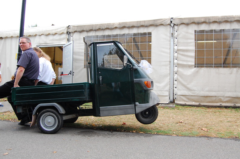 wenn mich nochmal jemand auf eine Hochzeitsfeier in Italien einlaedt, ich wuerde Ja sagen. Nach einem Fruehstueck mit anschliessender Gesangsprobe in der Tiefgarage ((fuer das Staendchen)) fuhren wir per Taxe zum Festzelt. Urspruenglich war ein Gartenfest angesagt aber die Wetterfee ist eine fette alte Sau und die angekuendigten Stuerme und Gewitter will man dann wenigstens halbwegs trocken ueberstehen. So wurde sehr kurzfristig umdisponiert und ein Zelt nebst Catering organisiert. Livemusik, Buffet, Karaoke, Staendchen von der Ukulele-Band ((daher die Probe in der Tiefgarage)), mehrere Gaenge und noch mehr Nachspeisen. Ich habe mich sogar hinreissen lassen 3 Glaesser Schorle zu trinken ((mit 80% Sprudelanteil)), was mir beinahe den Unmut des Brautvaters einbrachte, man kann so einen wundervollen Weisswein dann ja gleich in den Gulli kippen. Eine der ((ungeplanten)) Attraktionen war dann das Brautauto. Eine Ape50. Der Italiener sieht das Vehikel ja ohnehin jeden Tag, die zahlreichen Deutschen staunten sich die Augen aus dem Kopf und lobhudelten das Traditionsgefaehrt und dem Besitzer wurde schon meine F als Tauschobjekt angeboten. Wir begnuegten uns dann mit Probefahrten und kurvten stundenlang mit dem kleinen Knatterfrosch ueber das Gelaende. Davon angesteckt mischte sich auch das einheimische Volk drunter und alle hatten einen Heidenspass, fast noch mehr als an Karaoke.