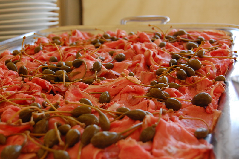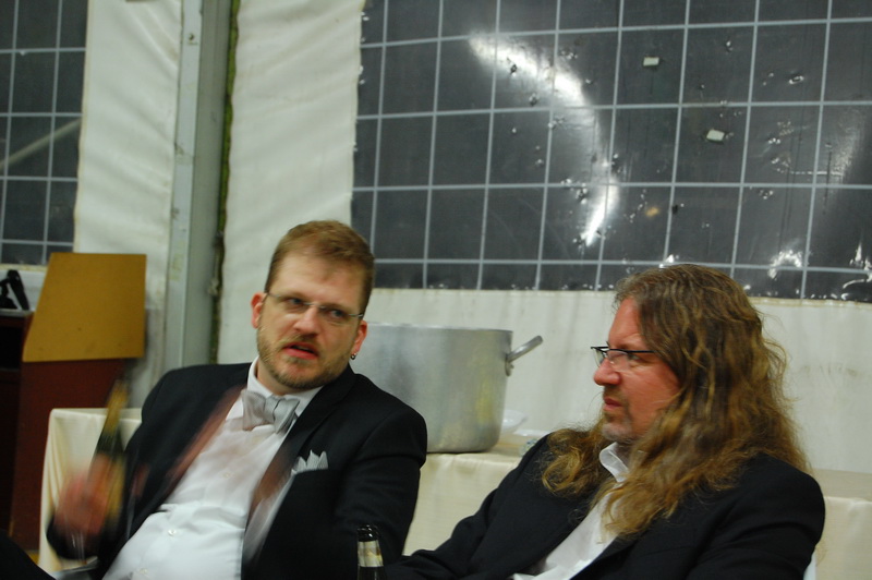 Ich sing ja nicht. Also nicht mehr als ich muss und so habe ich „It’s a heartache“ und „ti amo“ nebst ein zwei anderer Klassiker noch mitgemacht aber als dann „Master of Puppets“ und „Seek and destroy“ krakeelt wurde, habe ich das Mikro abgegeben. Alles Wahngeistige. So sang und tanzte man in die Nacht und als des Abends die Cateringfirma zusammenraeumte und der Brautvater die erschrockenen Gesichter von uns sah wurde noch eine Portion Pasta mit Kaninchenragout gekocht und damit die Wartezeit nicht wie in der Sahelzone ausfaellt, noch mehrere Kilo Prosciutto und und Salami aufgeschnitten. Ich war selten so satt und selten so amusiert. Matrimonio in Italia? SI!