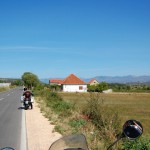 Dann aber raus auf die Strassen Kroatiens. Split ist jenseits des Hafens und der Tourimeilen nicht so der Bringer aber wir wollen ja in Richtung der Plitvicer Seen. Der Naturpark Velebit bietet sich als Route an und die Szenerie in den Doerfern und Gemeinden ist schaurig und interessant. Obgleich der Krieg seit ’95 rum ist, die Truemmer, die Reste der Zerstoerung stehen wie ein Mahnmal an jeder Ecke. Nicht sightseeing tauglich aber ein verdammt eindrucksvolles Zeitzeugnis. Unser Ziel ist eine kleine Pension mit sauberen Betten, WLAN und einer Katze. Was will man mehr.