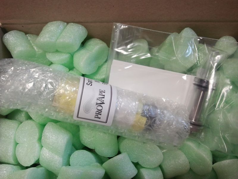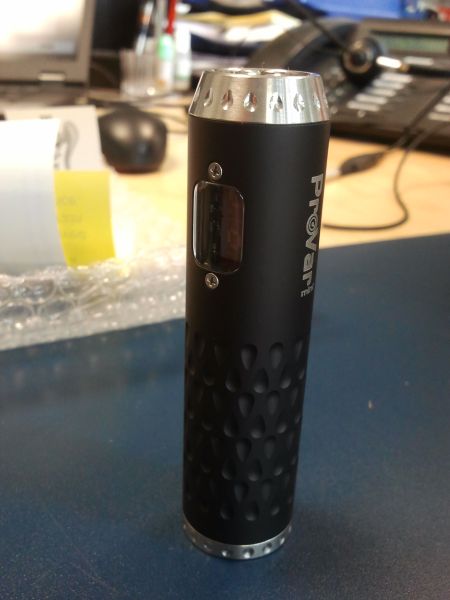 ProVari. Ich habe die Mini Version gewaehlt, da mir diese „Tropfen“ am Body besser gefallen als die Linien des „Normalen PV“. Dafuer kann ich auch nur 18350er Akkus verwenden. Und diese auch nur mit „Nuppel“. Also fallen alle meine VMAX Akkus ((efest 18350 800 mAH)) raus. AW IMR 700 mAH oder UltraFire 1200 mAH stehen zur Diskussion. Die AW sind echte 700er, die UltraFire beahupten 1200 und haben 700. Luegner, ueberall Luegner. Ich nehm die Ultrafire weil ich da 4 Stueck zum Preis eines AW kriege. Ich bin schwach. Es gaebe noch eine Extension Cap, dann koennte man 18490er Akkus verwenden. Aber die Laufzeit des PV mit 18350er ist schon nicht schlecht … ich glaub das brauch ich nicht momentan.