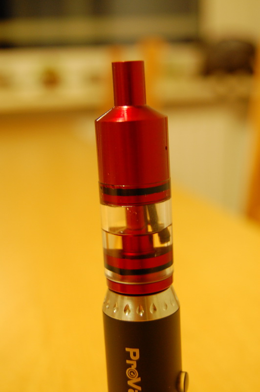 Madame hat eine Anschaffung getaetigt. Ich wusste gar nicht, dass man dieses Projekt ueberhaupt erstehen kann, nun haben wir jedoch einen Original HWV im Haus, besser gesagt, derer zwei. Sie hat den blauen, ich den roten HWV. Dieser Selbstwickler nach dem Genisis Prinzip ist aus Alu gedreht und eloxiert. Dampft sehr fein und das „Luftloch“ fuer die Verdampferkammer ist dank Gummidichtung statt Schraubgewinde auch exakt auf die Wicklung ausrichtbar. Geschmack und Dampf sind enorm. Hier ein grosses Lob. Nur die Befuellung, da hapert es. Es gibt nur eine Oeffnung und wenn man da mit einer Kanuele oder Nadelflasche drin steckt, kommt eben die Luft, die man verdraengt beim Befuellen nirgends raus. So wird die Sache ab halber Fuellung zu einer richtigen Sauerei. Abhilfe wuerde ein zusaetzliches Loch schaffen oder man entfernt das ESS Roellchen nebst Wicklung zum Befuellen. Letzteres ist eine schlechte Idee, denn wickeln will man nur, wenn es notwendig ist. Neues Loch bedeutet aber auch, der Transport wird zur Zitterpartie, denn damit steigert man das Risiko, dass alles wieder raussifft. Aber das sind Kinderkrankheiten und der HWV ist gut und guenstig, da arrangiert man sich mit kleinen Wehwehchen.