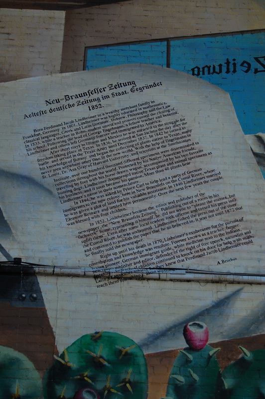 Neben der famosen Wursthalle und dem Friesenhaus hat es noch eine deutsche Baeckerei, allerlei lustige US-deutsche Wortspielereien und den Wasserrutschenpark namens Schlitterbahn. Texas hatte eine ziemlich hohen Anteil deutscher Gruendervaeter, das spiegelt sich in den unzaehligen deutschen Namen der Ortschaften wieder, auch wenn der Ami eine lustige Art hat, diese auszusprechen.