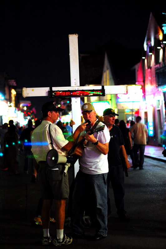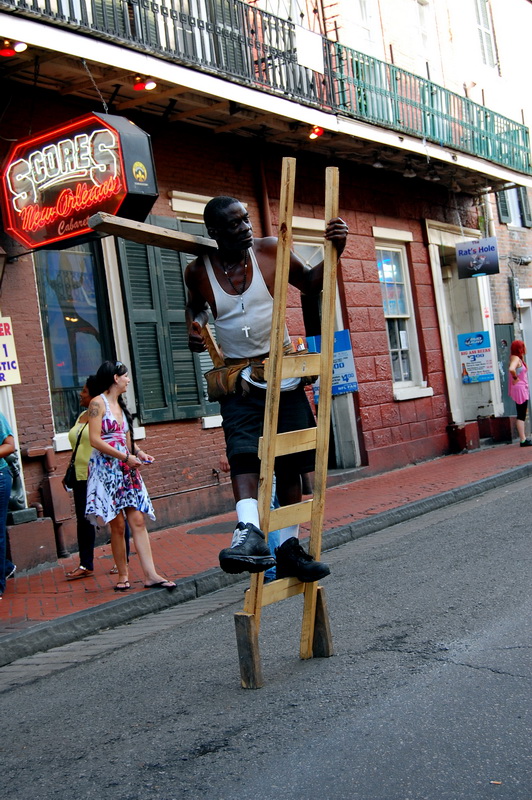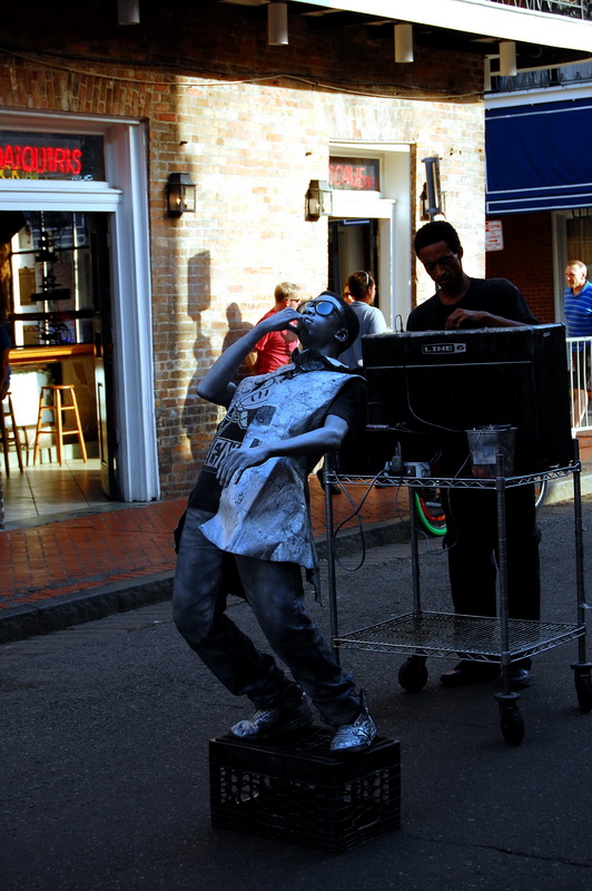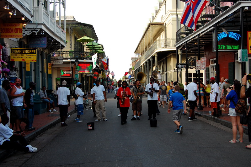 Das French Quarter ist die Seele der Stadt. In diesem Viertel brodelt es, Bars, Kneipen, Clubs, Stripschuppen, Sexshops, Restaurants und auf den Strassen Gaukler, Taenzer, Akrobaten, die fuer ein paar Dollar die Nacht die Besucher unterhalten. Jazz und Dixie Bands, Brass Bands und die Heilsarmee ziehen musizierend durch die Strassen und ein paar Gottesfuerchtige mit Holzkreuz versuchen die Seelen vor Alkohol, Drogen und Homosexualitaet zu retten. Schoen wenn man noch Ziele hat.