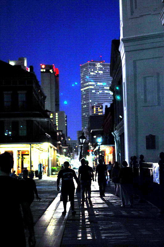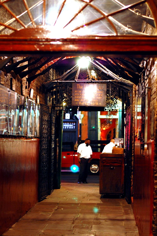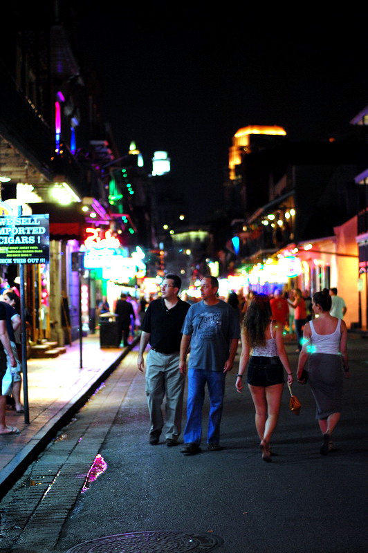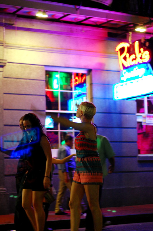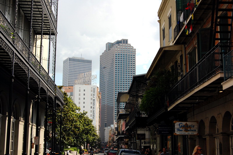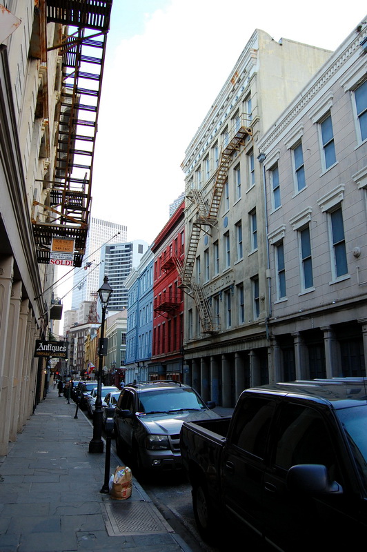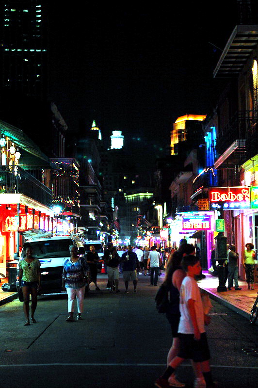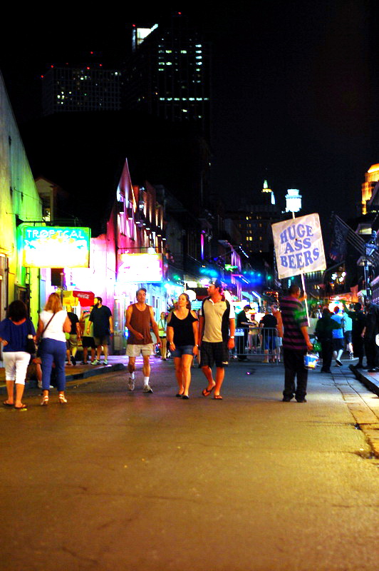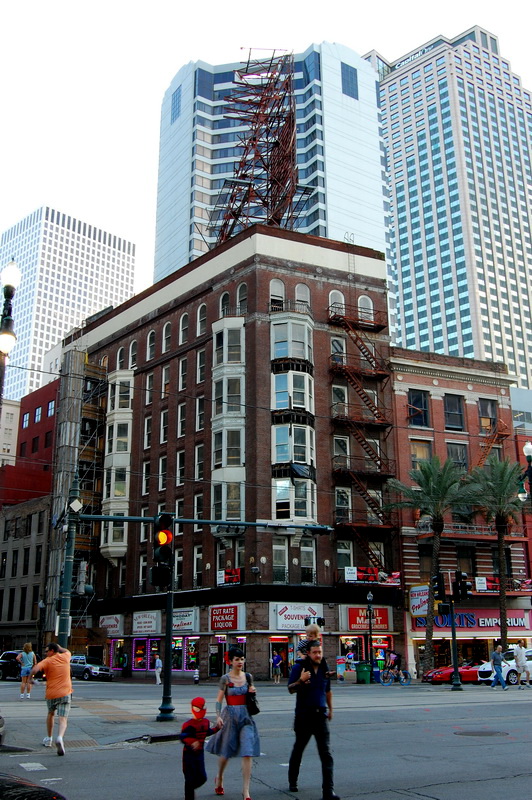 Doch dann wollen wir doch noch einmal das Treiben in der Bourbon St. erleben. An der Julia St. ist ein bezahlbarer Parkplatz und mit dem Street Car geht es zur Canal St. Von hier aus kann man das French Quarter bequem durchwandern. Klingt jetzt spassiger als es dann fuer einen unsportlichen, hitzeempfindlichen, leicht untersetzten Menschen wirklich ist. Ich steuere jedesmal automagisch Richtung Schatten, verweile Minuten an Kreuzungen, wenn eine leichte Brise dort durchweht und stelle mich stoisch wartend in klimatisierte Ramschlaeden und Co.