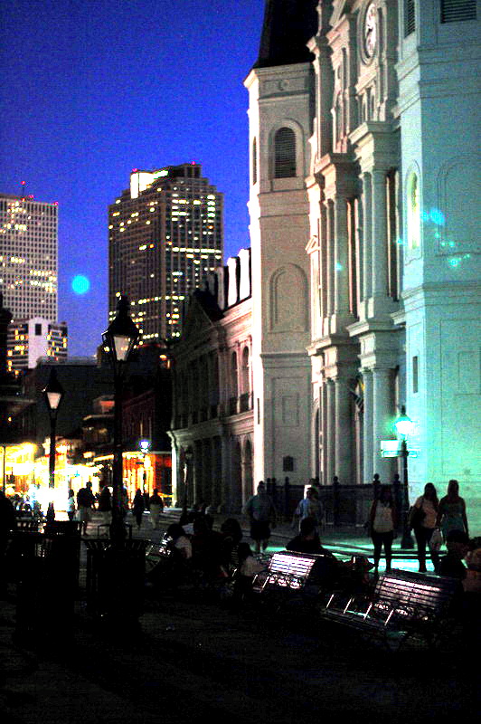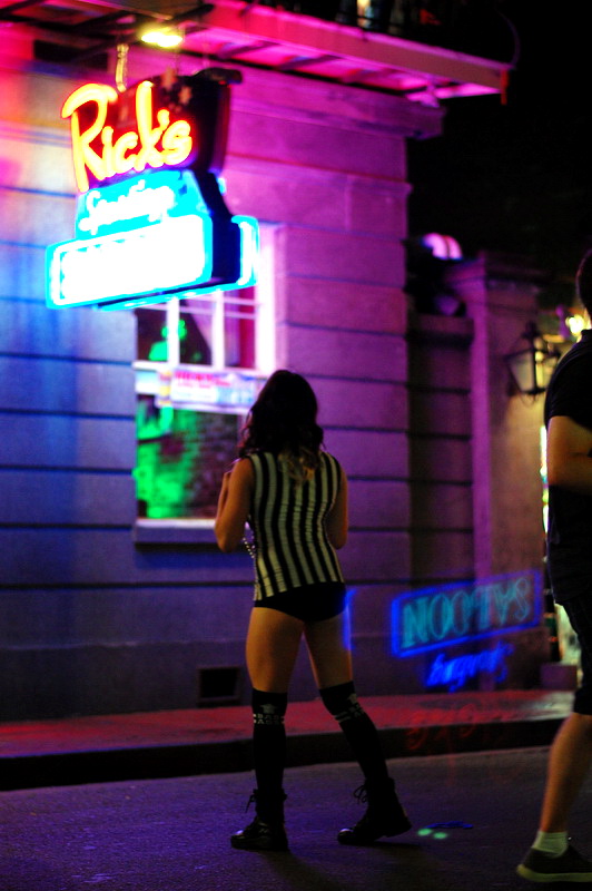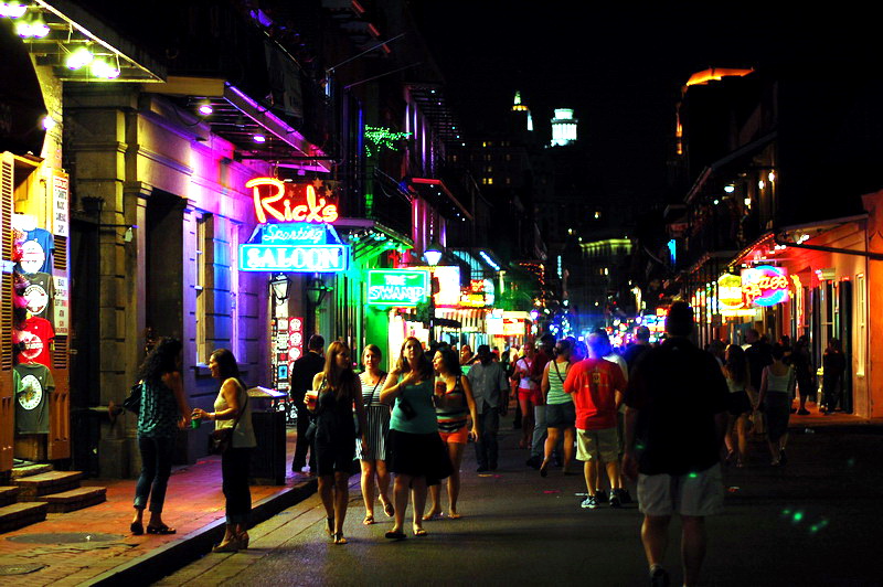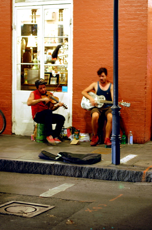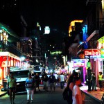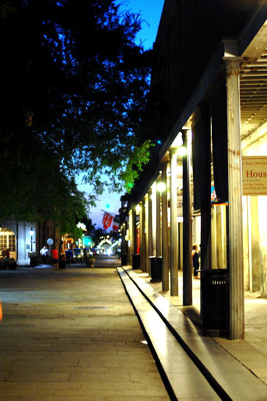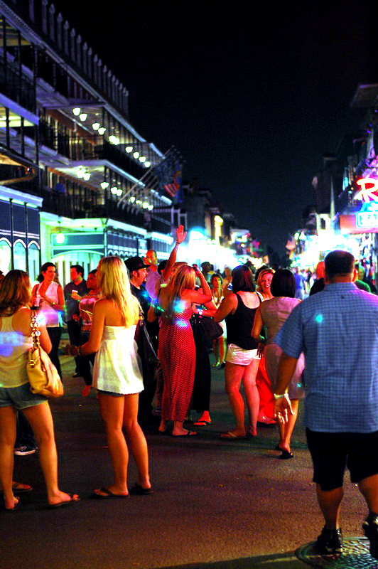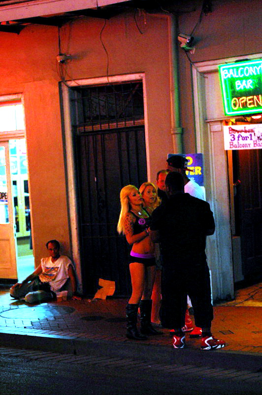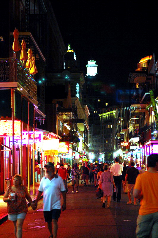 Doch dann wollen wir doch noch einmal das Treiben in der Bourbon St. erleben. An der Julia St. ist ein bezahlbarer Parkplatz und mit dem Street Car geht es zur Canal St. Von hier aus kann man das French Quarter bequem durchwandern. Klingt jetzt spassiger als es dann fuer einen unsportlichen, hitzeempfindlichen, leicht untersetzten Menschen wirklich ist. Ich steuere jedesmal automagisch Richtung Schatten, verweile Minuten an Kreuzungen, wenn eine leichte Brise dort durchweht und stelle mich stoisch wartend in klimatisierte Ramschlaeden und Co.
