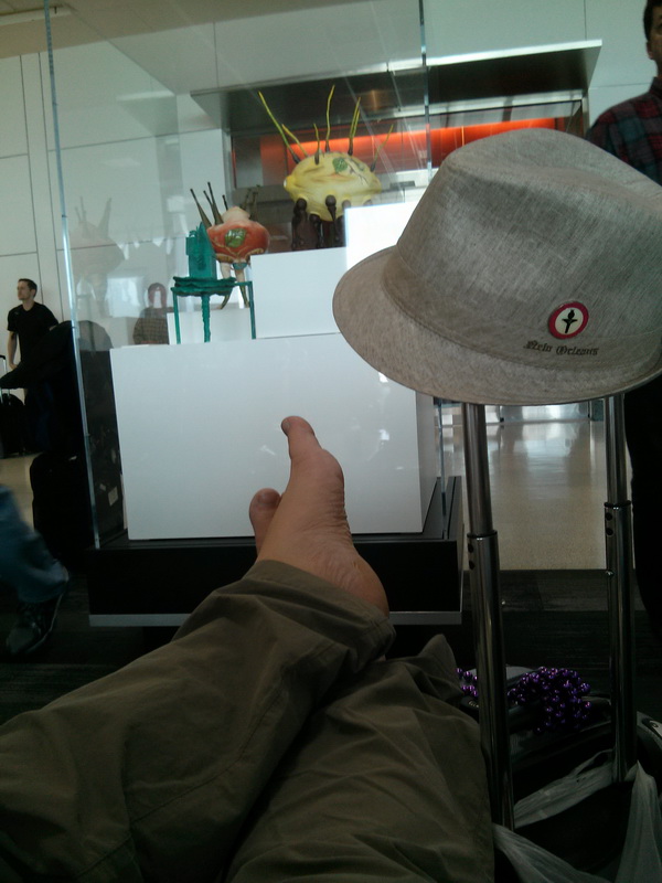 heute ist der Tag des Abschieds. Vor der Fahrt zum Flughafen erhielten wir noch Besuch von den lokalen Ingress Spielern, die uns die besten Stellen zum farmen nach High-Level Items verrieten und von uns ein paar Souvenirs vom Meetup in Austin erhielten um ihre Mitspieler mit Aufklebern fuer ihre Fraktion zu versorgen. Danach ueber ein paar kleine Umwege geht es Richtung George Bush Intercontinental Airport um den Leihwagen zurueck zu geben. Rueckgabe war problemlos und der Shuttlebus brachte uns vom CarTerminal zum Abflugterminal, in dem wir nach der Security Kontrolle noch eine Weile verbrachten.