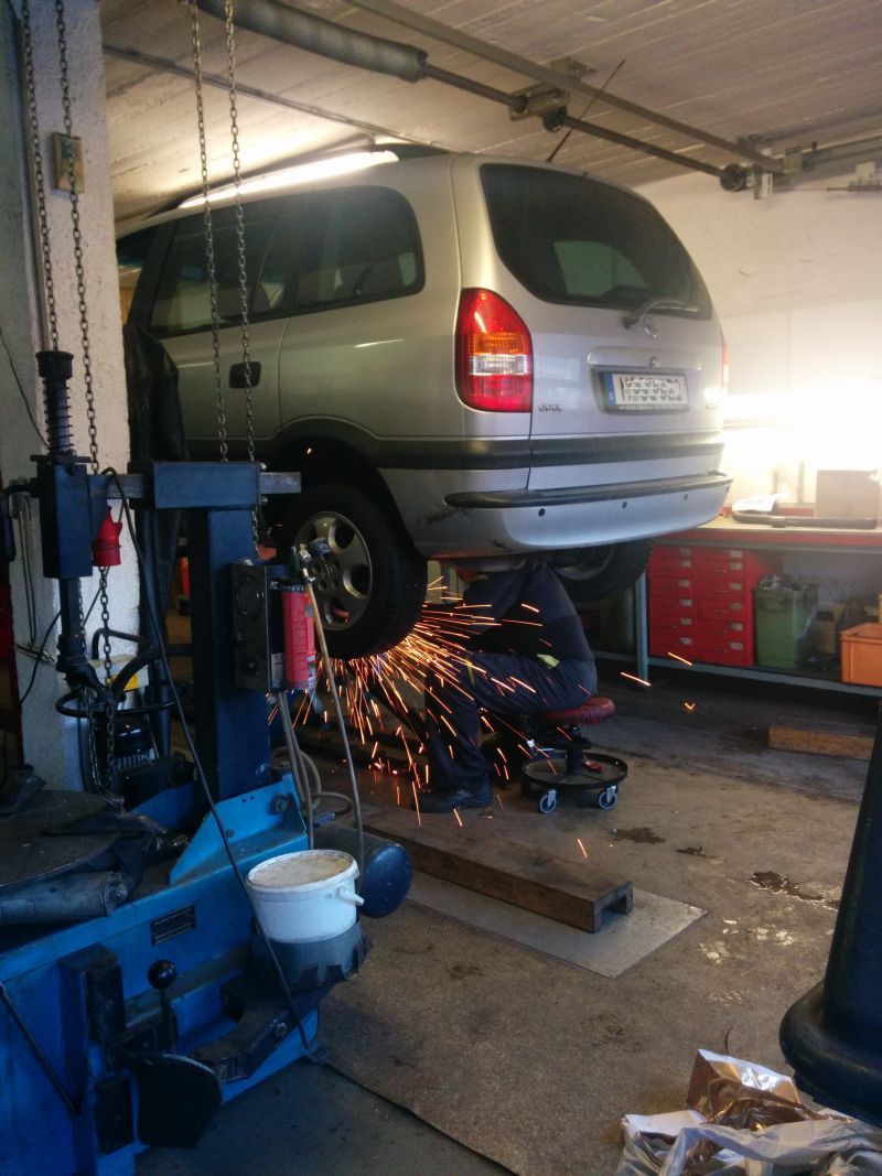 vor allem wenn es der eigenen Kiste entspringt. Der Auspuff, also Endtopf und Mittelschalldaempfer waren am Zafira ja nun schon leidlich mitgenommen, dass das auf Dauer mitunter nervig und bei offenem Fenster im Stand auch olfaktorisch eine Herausforderung. Derlei war beim Kauf bekannt und der freundliche Hardwaremonteur ums Eck bestaetigte, dass jener Tausch wohl anstuende aber keine allzu grossen Loecher ins Zwiebelleder reissen wird. So schickte ich mich an, das billigste Blech in Auspuffform in der Elektrobucht zu erwerben, das gerade noch den Anspruch hat, sich „passgenaue Erstausruesterqualitaet“ auf die Fahnen zu schreiben ohne dabei rot zu werden. So jedenfalls die Hoffnung. Geliefert wurde zuegig, Anbaumaterial hinten doppelt, vorne fehlend geliefert. Macht nix, so eine Schelle ist ja Standardkram.