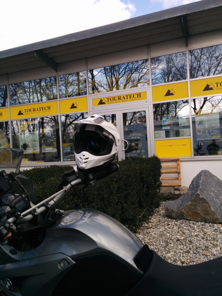 Bei allem Spass, den mir der Ausflug bereitete, wurde auch wichtiges erledigt .. so die malade Sitzbank zum freundlichen Touratechpartner gebracht, Ersatzteil fuer die Visiermechanik des BMW Endurohelmes besorgt und Moped gewaschen.