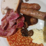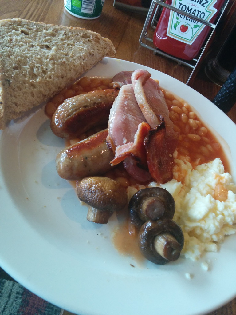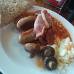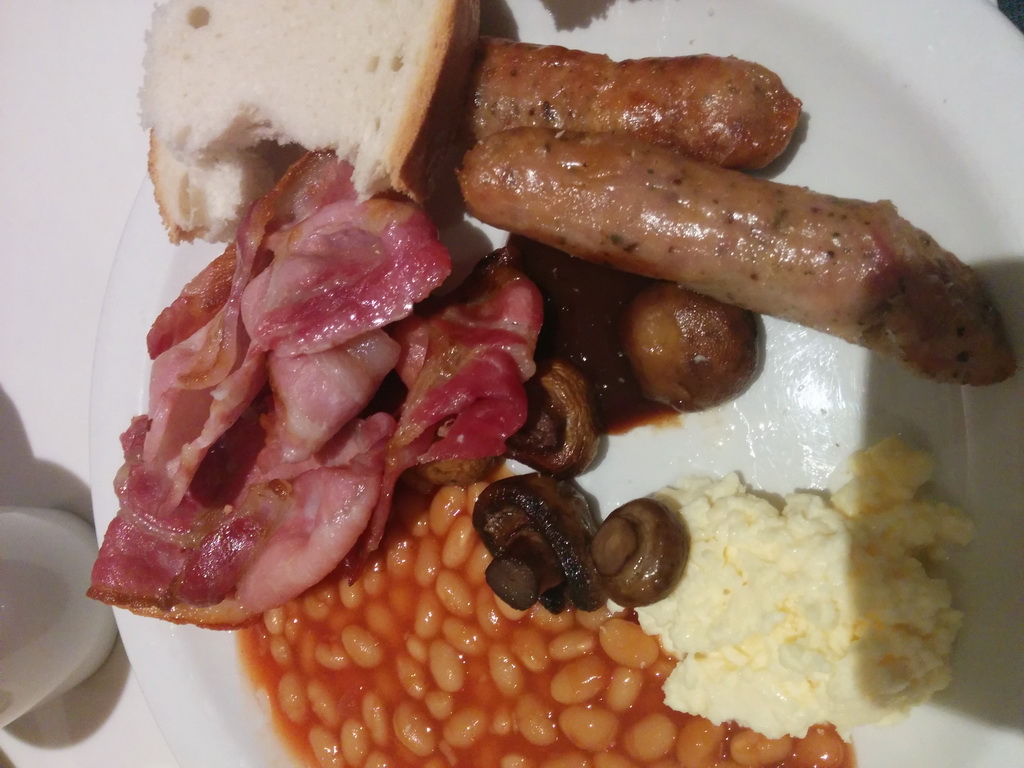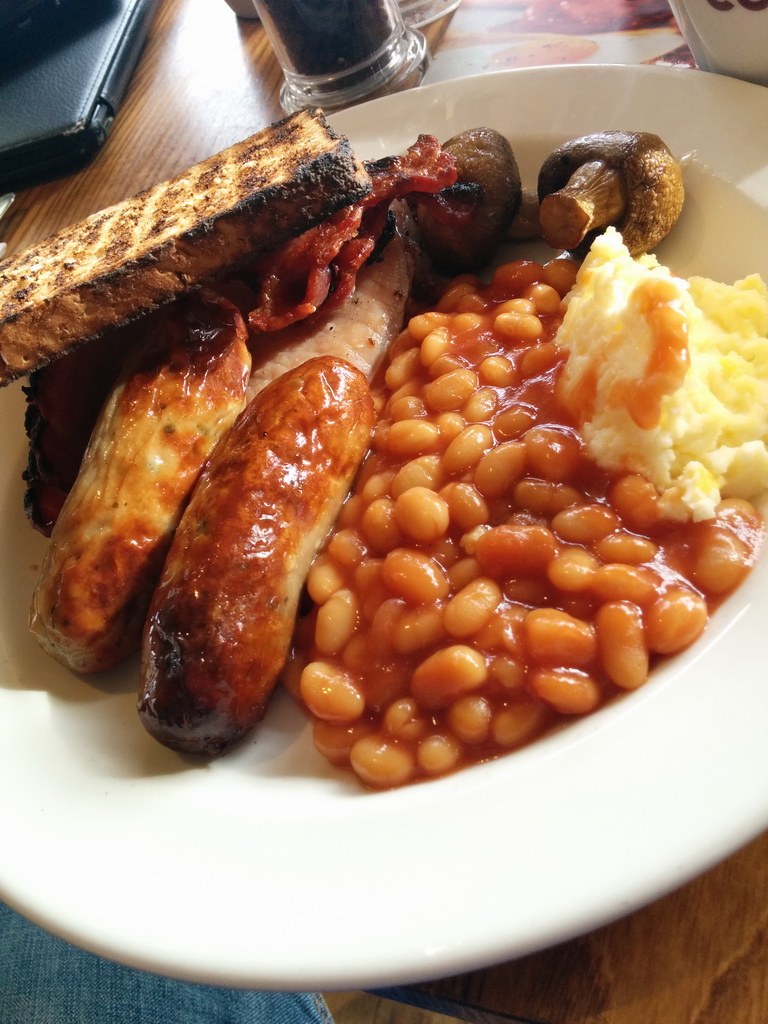 … wenn man es mag 😉 Hier ein kurzer Fast-Food Abstecher nach Schottland. Und wenn man den ganzen Tag unterwegs ist, ist das Fruehstueck die wichtigste Mahlzeit am Tage. Die Currywurst am Ende ist der Willkommens-Snack am Flughafen Muechen bei der Heimkehr.