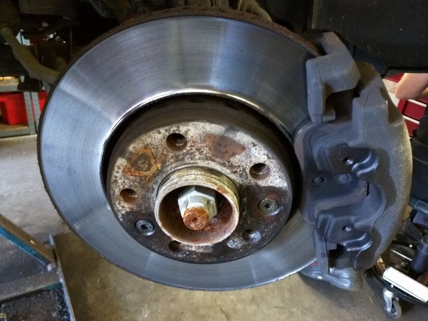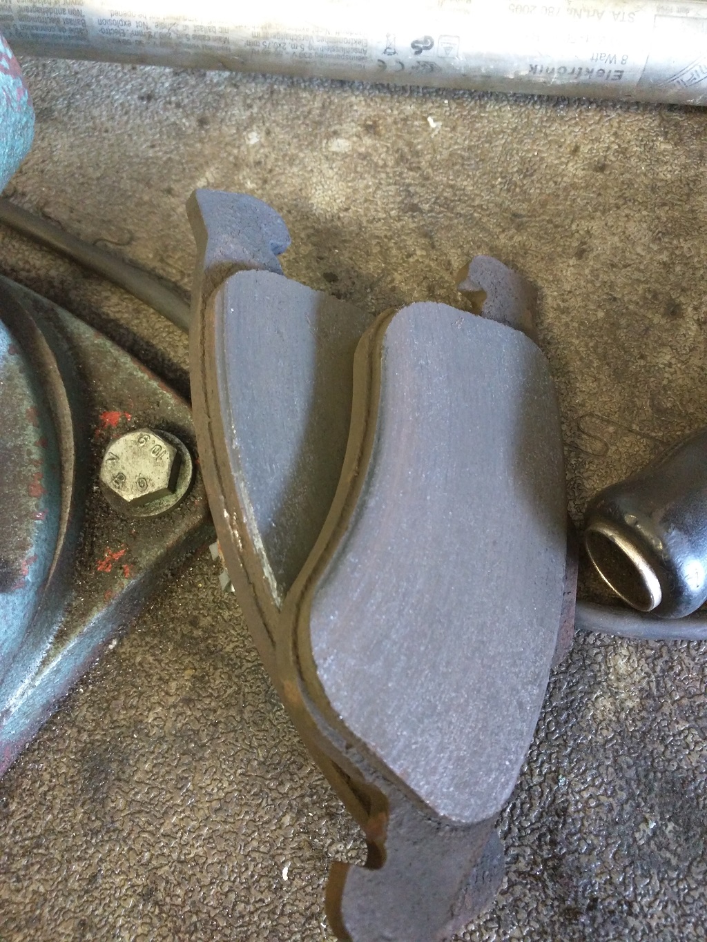 die Verzoegerungselemente der Vorderachse waren nun doch schon ein wenig abgeritten. Schon beim Wechsel auf die Sommerpellen spruchte der Werkstattmensch, die Scheiben und noch mehr die Kloetze seien faellig fuer einen Wechsel ..