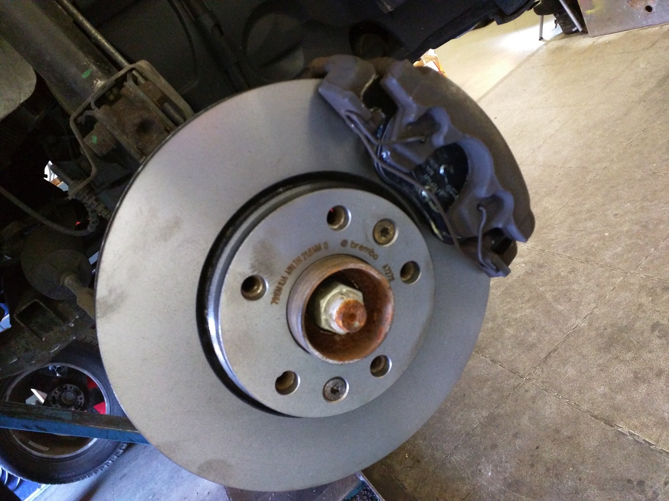 Kaum 5000 km spaeter, nach einem ausgiebigen Italien und Daenemark / Schweden Rundkurs war es dann auch soweit, die Brembo Komplettpakete wurden verbaut und der weisse Karpartenbomber steht wieder still, wenn man es moechte. Inkl. Einbau kostet der Spass damit nicht viel mehr als 200 Europataler und nachdem die Bremse in Italien beim einem steilen Abstieg vom Monte Baldo arg stank, war ein Austausch zu verschmerzen. Nur noch ein paar Kleinigkeiten, dann kann der Kraftwagen dem Pruefer zur im Oktober anstehenden Pruefung entgegentreten und sein Siegel zur bestanden HU auf der Nummerntafel erhalten.