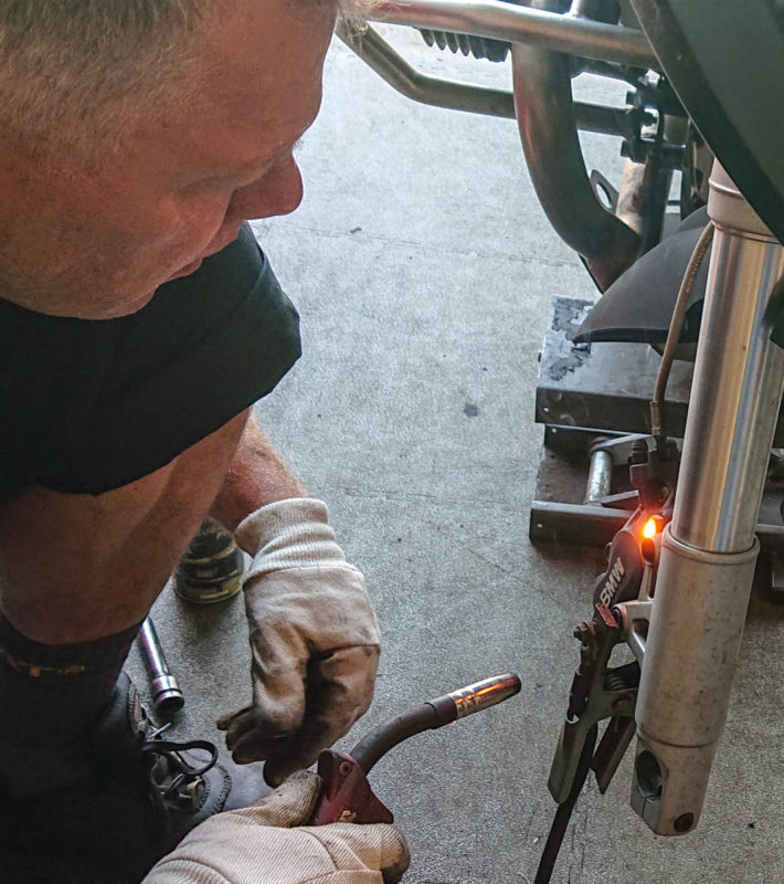 Guter Rat ist bekanntlich ebenso teuer, wie ein neuer Sattel und so versuchte man erst eine Mutter aufzuschweissen, dann die 8er Schraube auszubohren ohne das Gewinde zu beschädigen und hatte mit beidem nur mässig Erfolg.