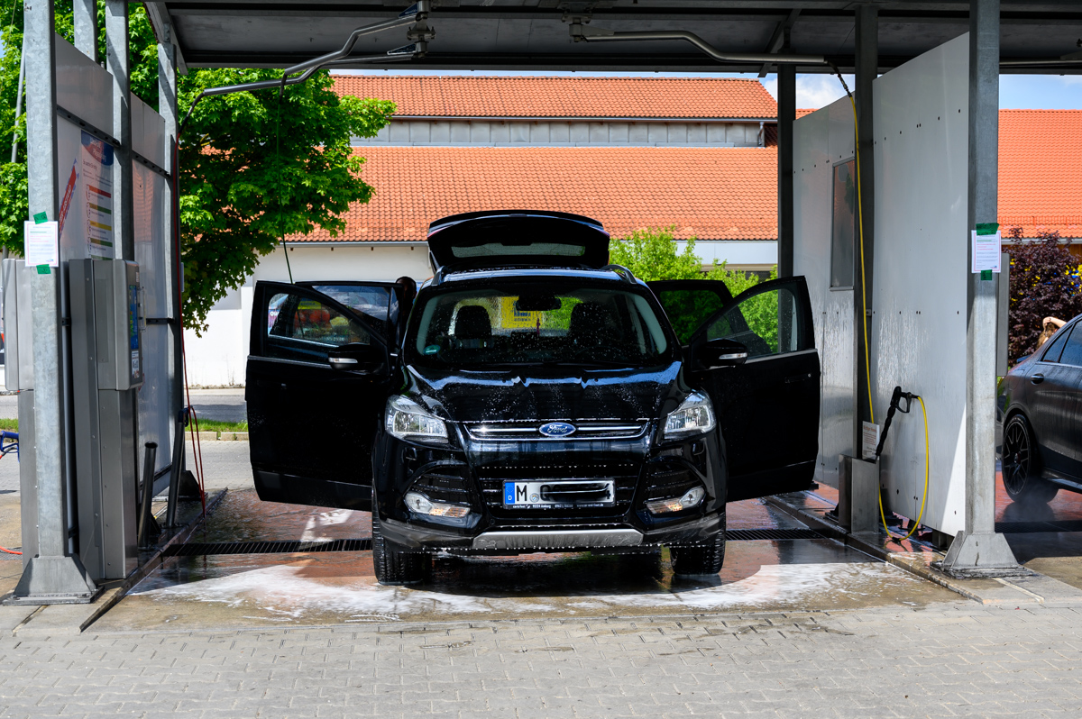 Akt 4: Highlight des Tages, ein Kuga wird gewaschen, Innen und Aussen. Mit dem Hochdruckreiniger .. leider auch Innen. Vermutlich hat ihm einer volle Krawatte in die Karre gebrochen … oder 3 Kinder bekommen … oder jemand starb vor langer Zeit darin. Egal.