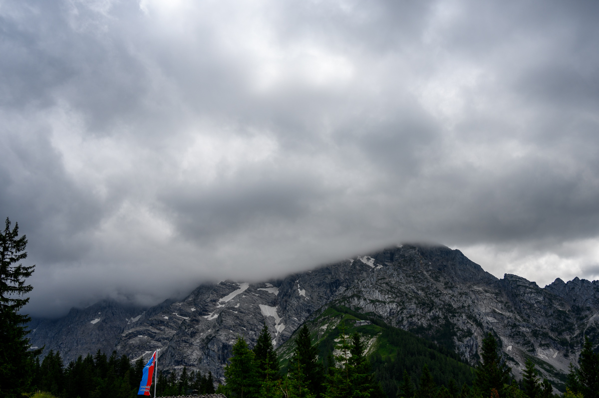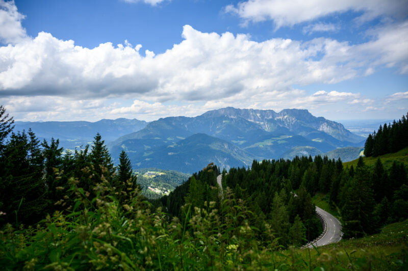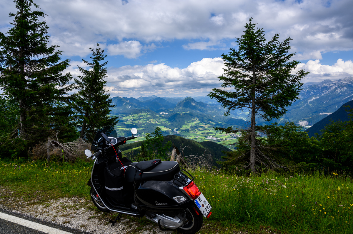 Von Bernau über Inzell Richtung Berchtesgaden ging es weiter auf die Rossfeld Panoramastrasse, die mit 5.- EUR Maut pro Mopped recht heftig bepreist ist aber da ich dort noch nie herumkradierte und die Pan Aroma Geschichte in so schillernden Farben angepriesen wurde, spendierte ich dem Ticketautomaten die Kohle und wurde nicht enttäuscht.