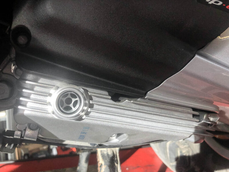 Nun bin ich eigentlich gesegnet mit einer HPE, die keinen merklichen Verbrauch zeigte auf die 4.256 km ihres Lebens. Garantie, dass das so bleibt, hat man aber nicht. Hier ist nun der Auftritt des Bullauges. Es gibt Original Ölwannen, in die ein findiger Mensch einfach ein Loch stanzt und dann ein Auge einpresst. Fertig. So simpel, so cool.