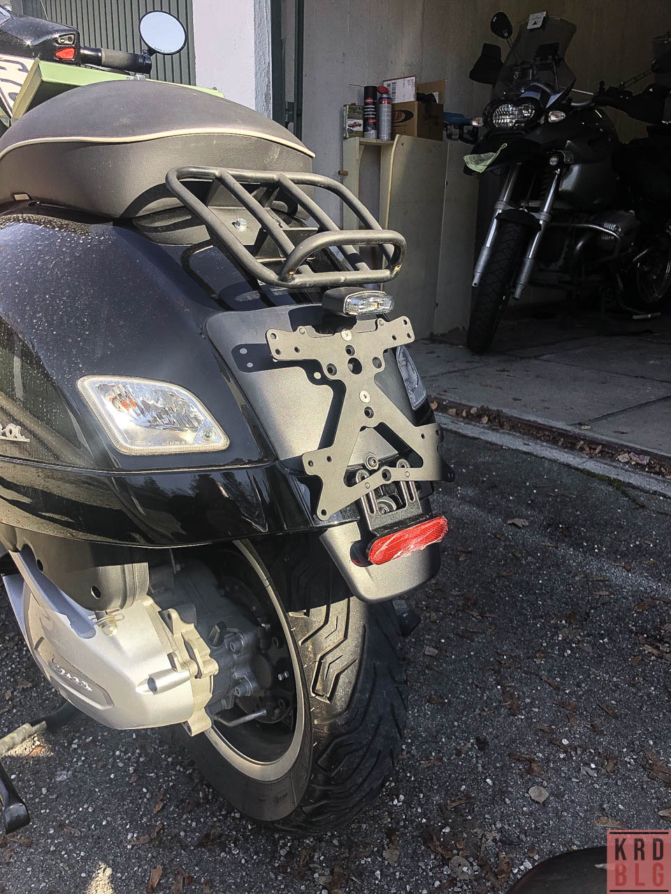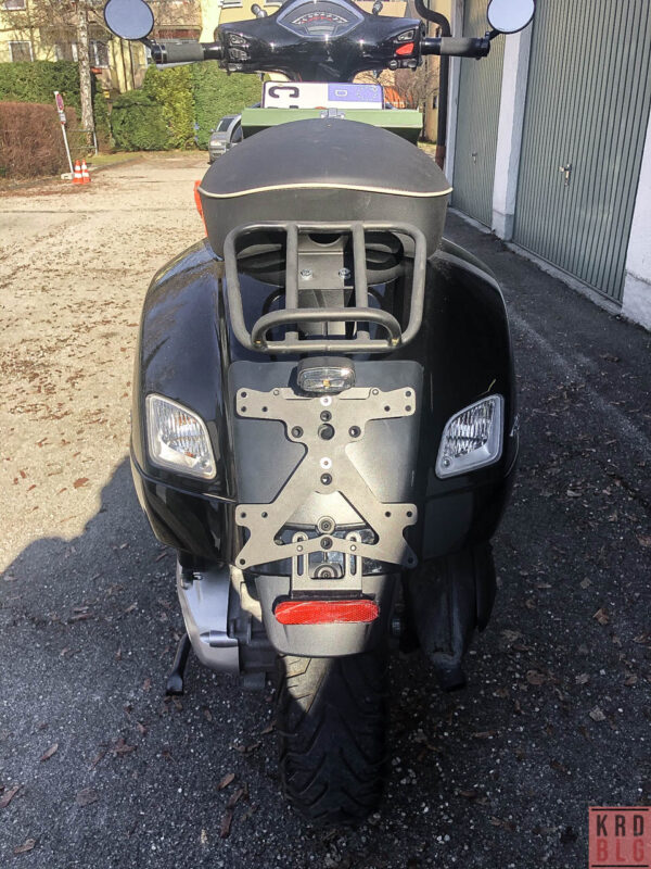 dies oder gleich lauthals „Diamaaaaanten!“ muss ein Zeichner bei Rizoma gerufen haben, als er den Kennzeichenhalter für die Vespa designed hat. Man nimmt vermutlich auch nur edelste Metalle, Platinschrauben, Weissgoldbuchsen und Haare vom Einhorn um dieses Ding zu bauen, bevor man versucht dem Kunden dafür deutlich über 200.- EUR aus dem Arsch zu leiern.