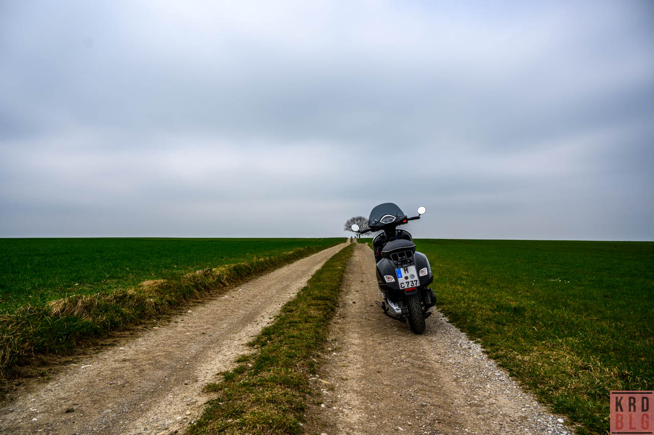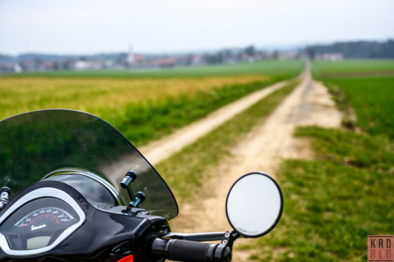 Die Offroadfähigkeiten der Wespe sind, sagen wir mal, ausbaufähig. 12″ Räder sind nicht so der Hit auf nem Feldweg, ASR aus und angasen ist aber dennoch recht spassig. Auch wenn die 300ccm da eigentlich nicht sonderlich spektakulär sind.