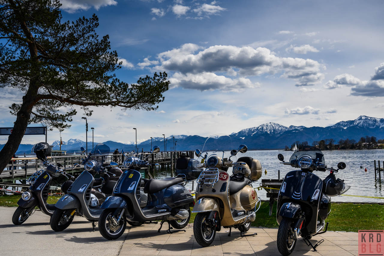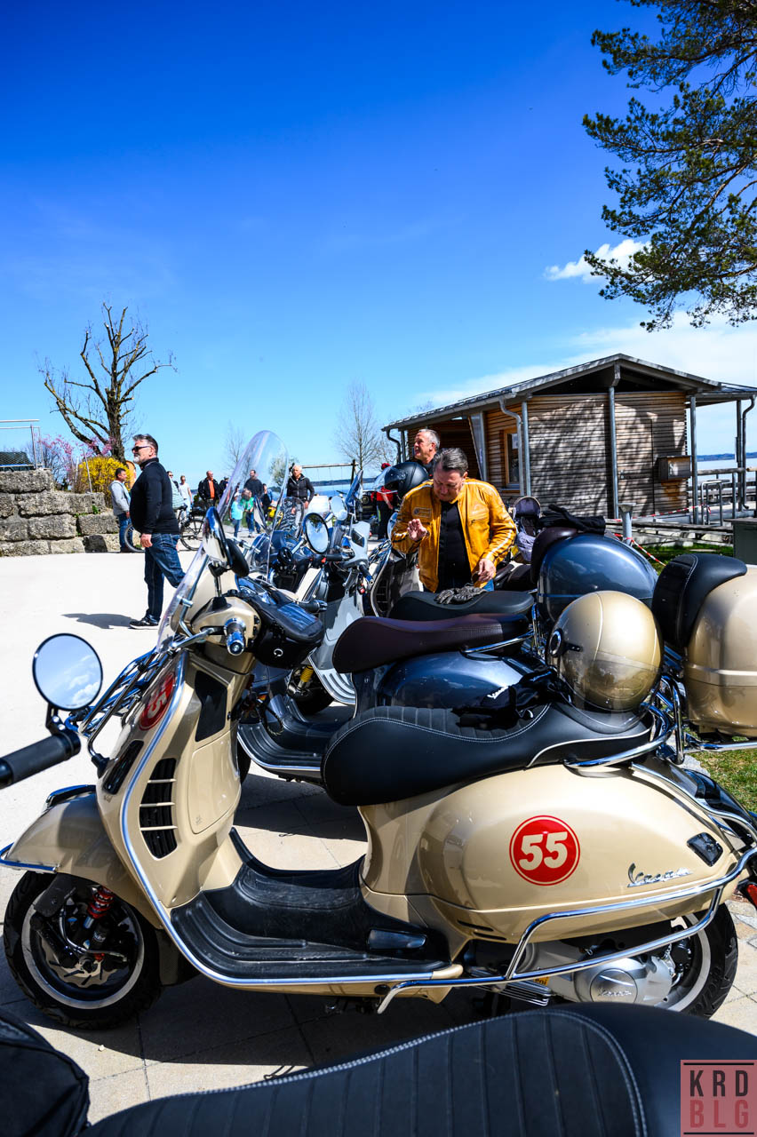Nachdem die lustige Seniorentruppe per Whatsapp Rundruf zum Stelldichein am Chiemsee aufrief, wurde der Teebeutel gepackt, die Italienerin betankt und los geht es nach Gstadt. Irritierenderweise verirrte sich ein Yamaha MT irgendwas zu uns. Es handelt sich dabei um die nächste Generation der Rollatorenfahrer, quasi die letzte Besichtigung, was so ein italienischer Eimer in Echt so kann. Na dann, willkommen und ab dafür.